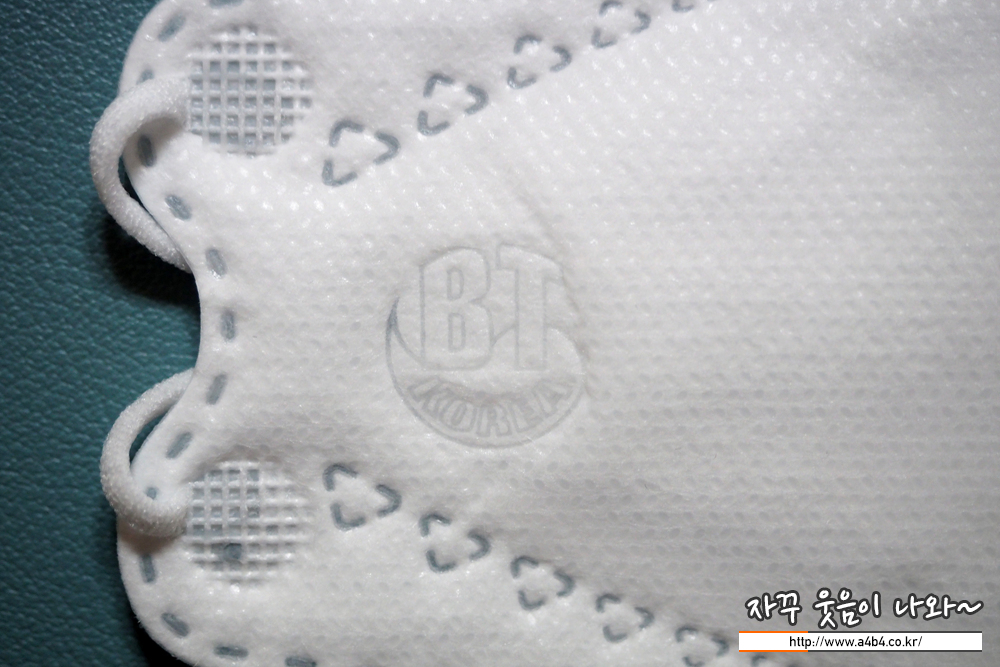 마스크 앞부분에는 태극마크와 브랜드를 경합한 로고심볼이 음각되어 있습니다. 딱 봐도 BT제품인것을...