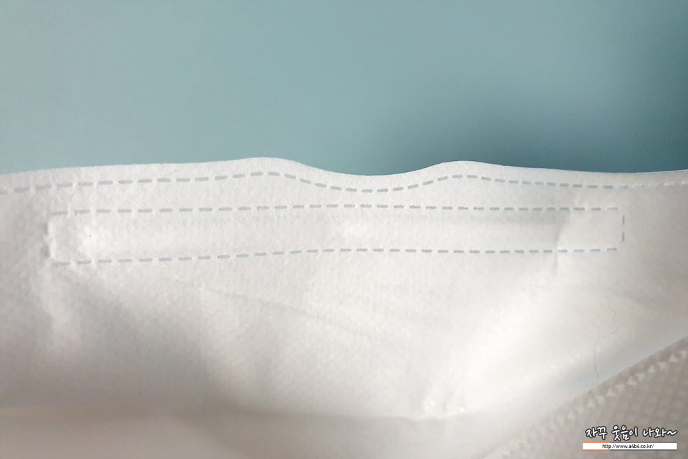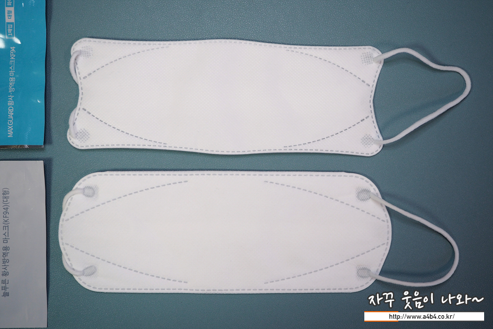 KF94 맥스가드 마스크는 매끄러운 감촉의 부직포를 겉감으로 사용했습니다. 하드한 타입의 마스크로 착용핏은 상당히 만족스럽습니다. 마스크 두께는 얇은 편입니다.