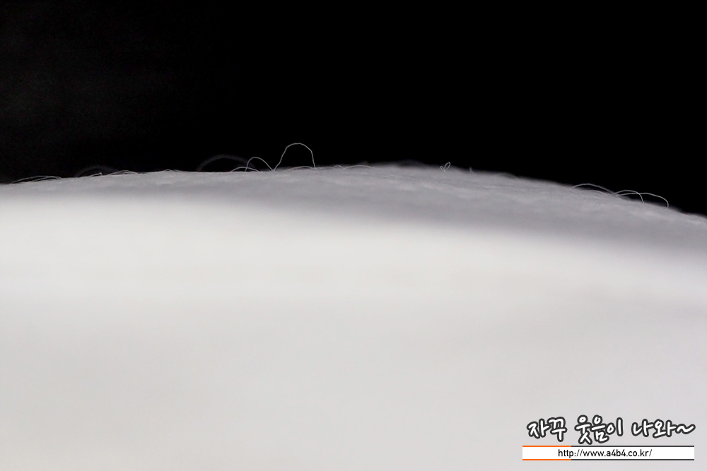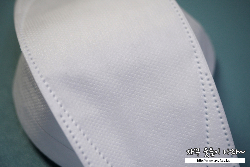 에버그린 황사마스크 대형의 내피는 부드러운 감촉의 부직포가 적용 되었습니다. 마스크 내피에는 아래 사진과 같이 보푸라기가 조금 보이는네, 실 착용해보니 우려되었던 가렵거나 간지러운 피부트러블은 생기지 않았습니다.