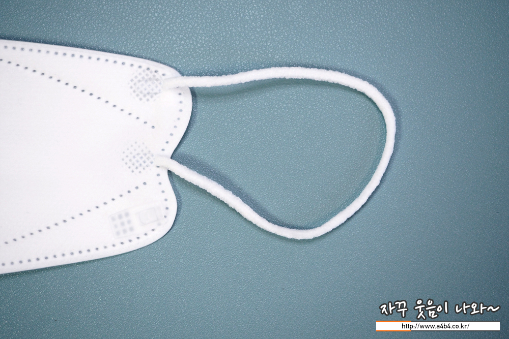 에버그린 황사방역용 마스크 대형은 독특한 방식의 끈길이 조절이 가능한 제품입니다. 원형의 어어밴드가 사용되었으며, 전면에 플라스틱 팁이 부착되어 있어 후크 방식으로 이어밴드를 걸어서 끈길이를 조절하는 방식입니다.