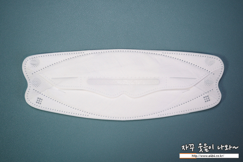 에버그린 KF94 마스크 대형은 약한 엠보싱 마감된 매끈한 감촉의 부직포가 적용되었습니다. 일반적인 두께감을 보여주며, 착용감은 소프트한 느낌을 주는 제품입니다.
