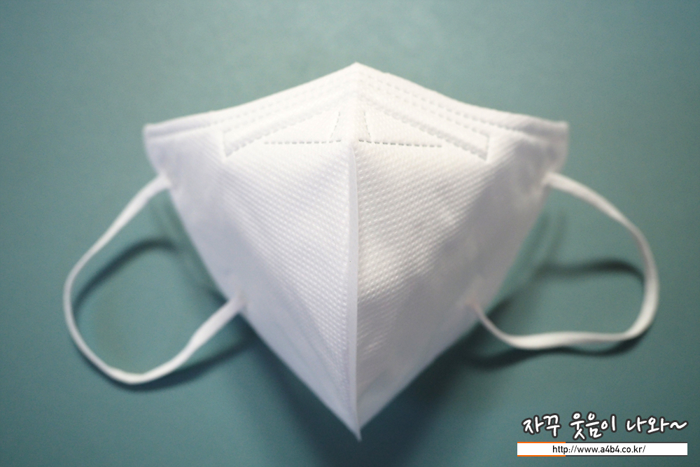 KF94 푸름웰니스 마스크는 우리가 흔히 새부리형 마스크로 불리는 투디 타입의 디자인을 보입니다. 마스크 전면에 별도 각인 없이 깔끔하게 처리되어 있습니다.
