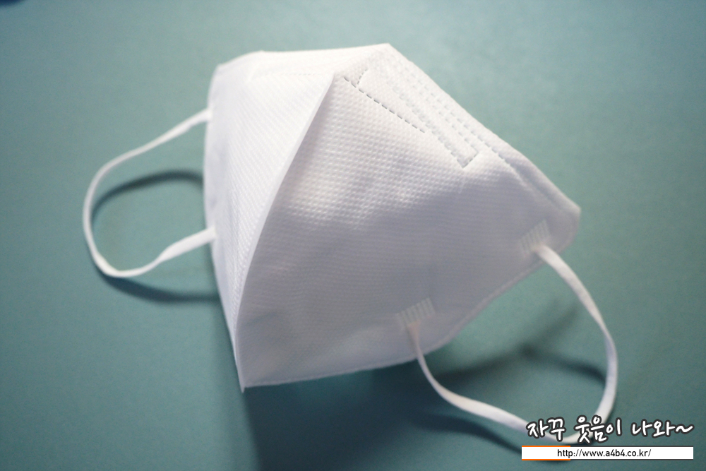 흔히 칼국수끈으로 불리는 납작한 모양의 이어밴드가 마스크 전면에 접착되어 있으며, 이어밴드 탄력은 약간 강한 편입니다.