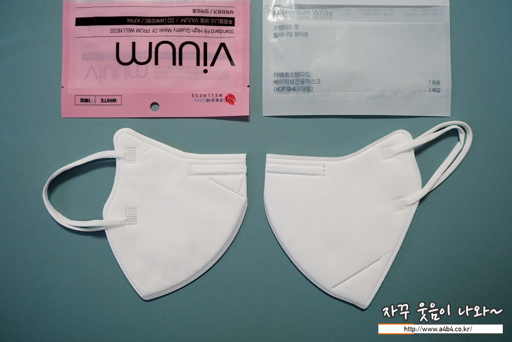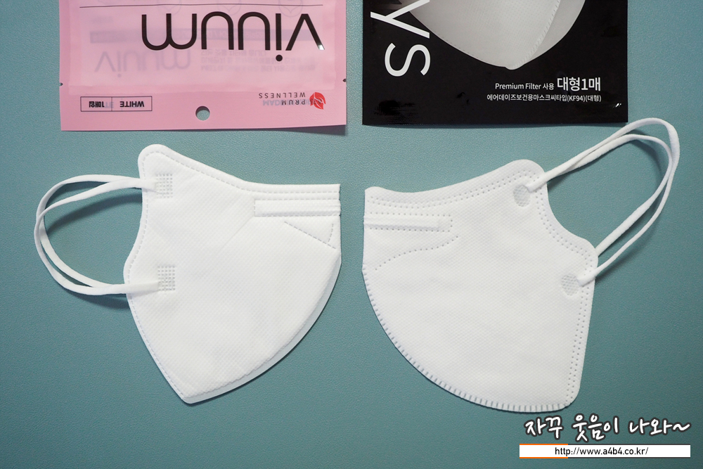 비움 마스크는 KF94 새부리형 마스크 중에서는 두께감이 있는 제품입니다. (아에르 스텐다드 라인 생각 하시면...) 약간 소프트한 타입으로 일반적인 착용감을 보여줍니다.