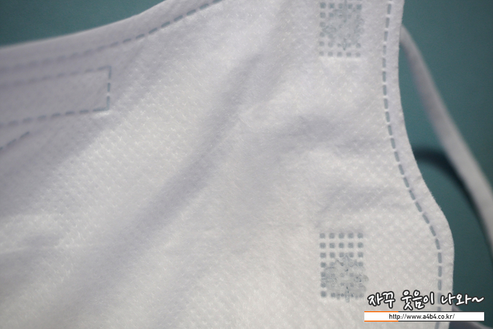 마스크 겉감은 패턴처리된 약간 매끈한 감촉의 부직포가 적용 되었습니다.