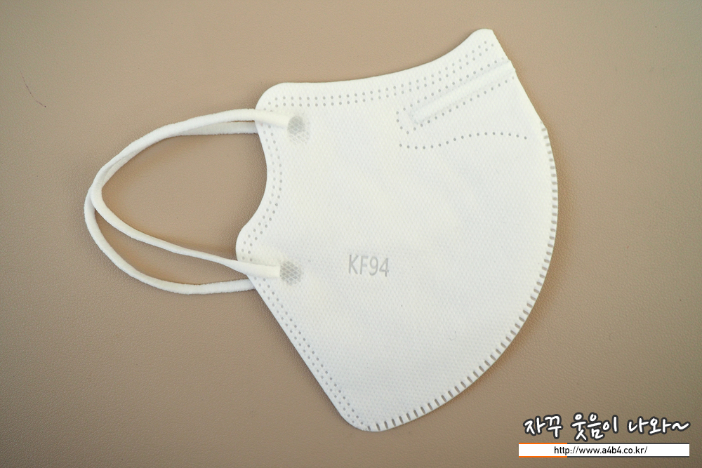 마스크 디자인은 새부리형 마스크로 흔히 C타입 마스크로 불리는 중앙 접합부분이 원형으로 디자인된 마스크입니다. 상당히 원에 가까운 접착부분 디자인을 보입니다. 마스크 왼쪽 하단에는 필터 타입인 FK94가 인쇄되어 있습니다.