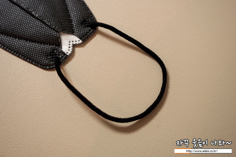 마스크에 사용된 이어밴드는 원형으로 뒷부분에 접착되어 있습니다. 이어밴드 탄성은 약간 약해서 신축성이 좋습니다. 대두에게는 좀 편한...
