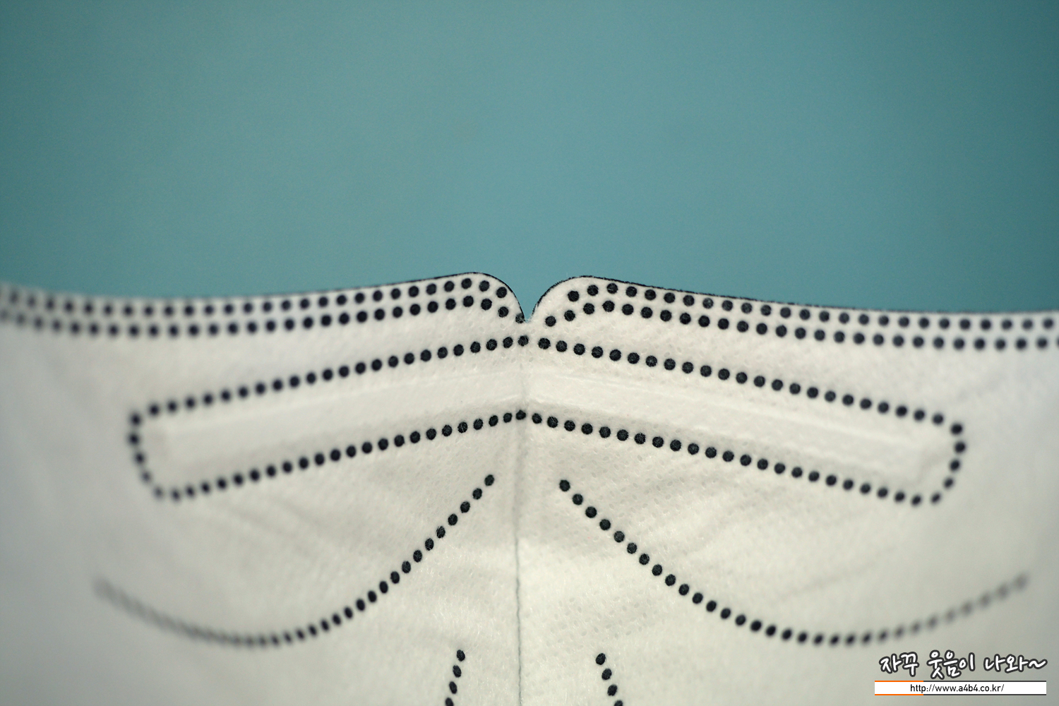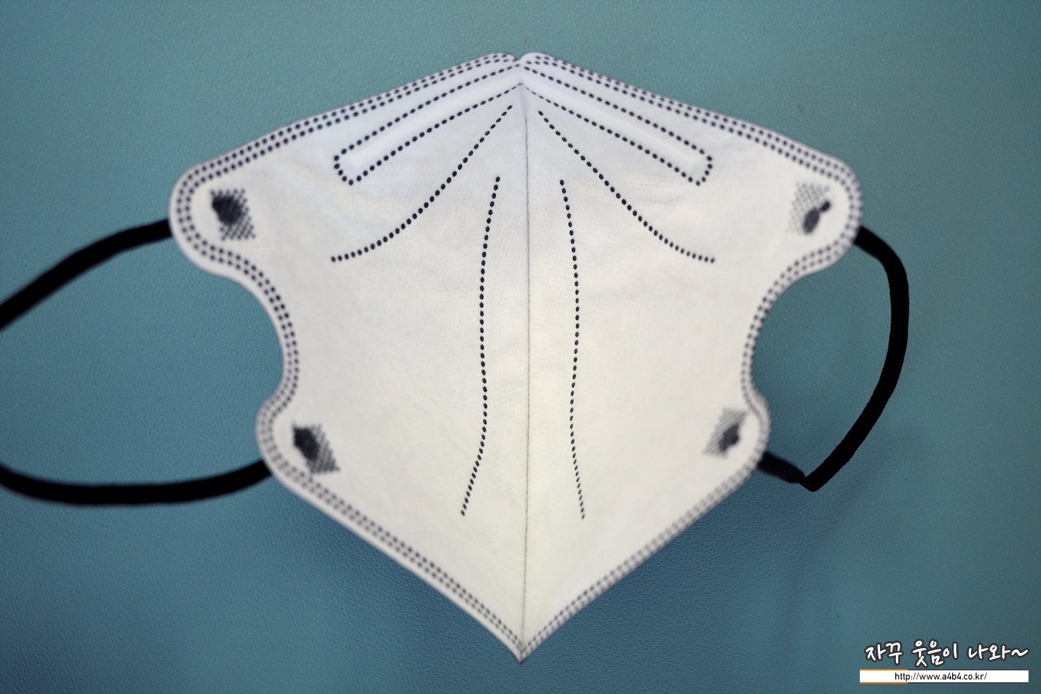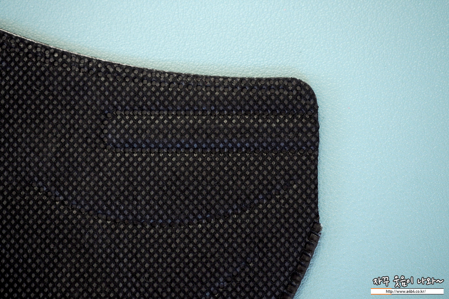 마스크 겉감은 패턴 처리된 매끈한 감촉의 부직포가 적용 되었습니다. 마스크 발색은 반 유광블랙 색상으로 깔끔한 발색을 보여주는 마스크입니다.