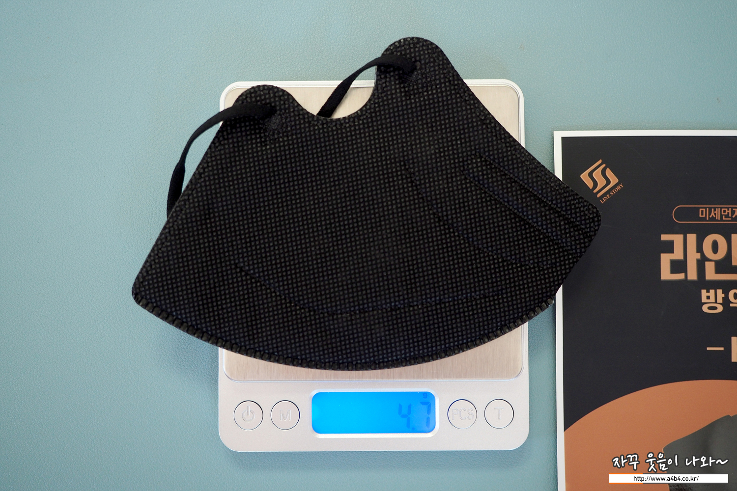 라인스트리 방역마스크 블랙 대형 무게는 4.7그램으로 일반적인 부리형 마스크와 비슷한 무게를 보입니다.