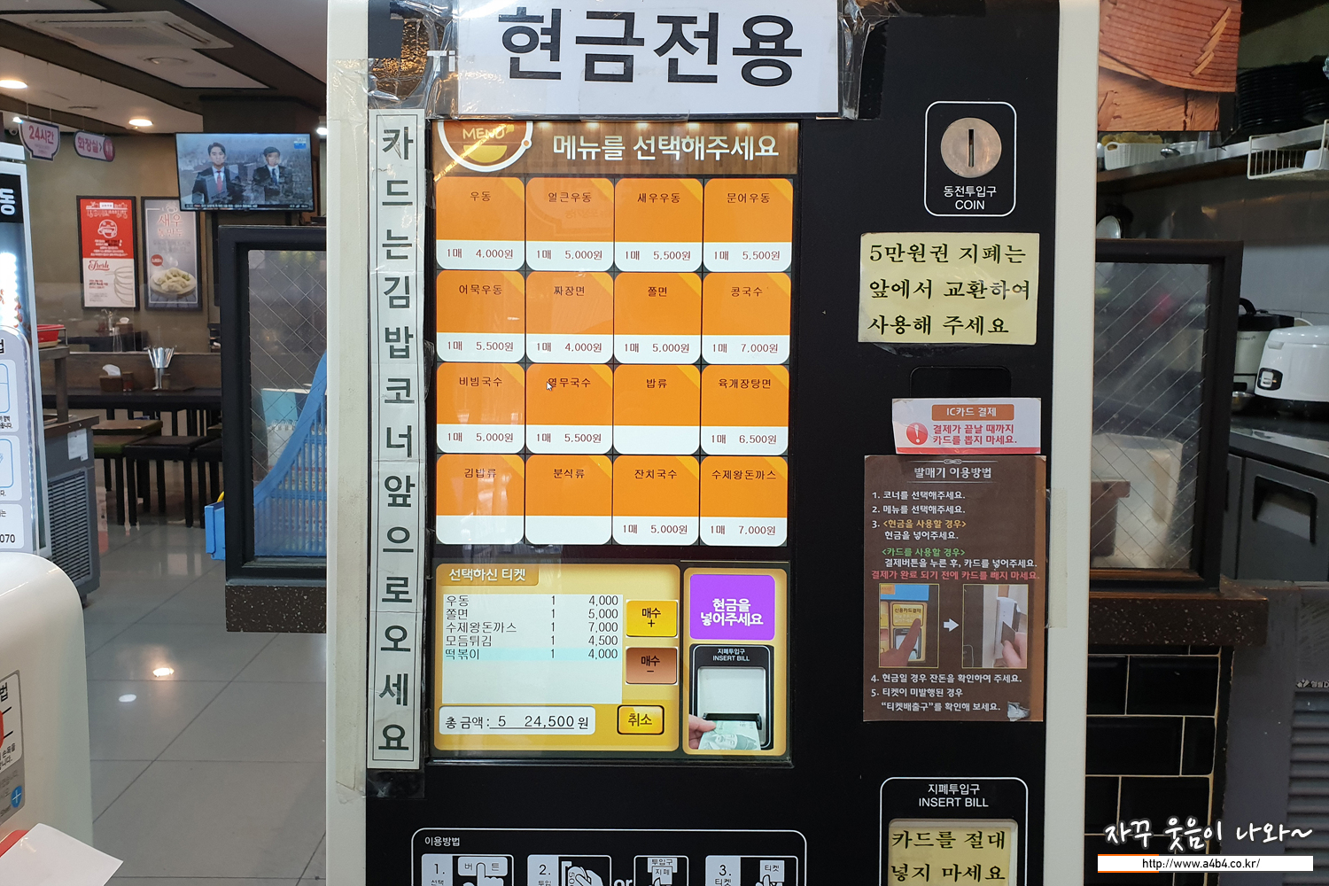 현금 결제를 하실분은 위의 발권기에서, 카드 결제를 희망한다면 앞쪽에서 결제하면 됩니다.