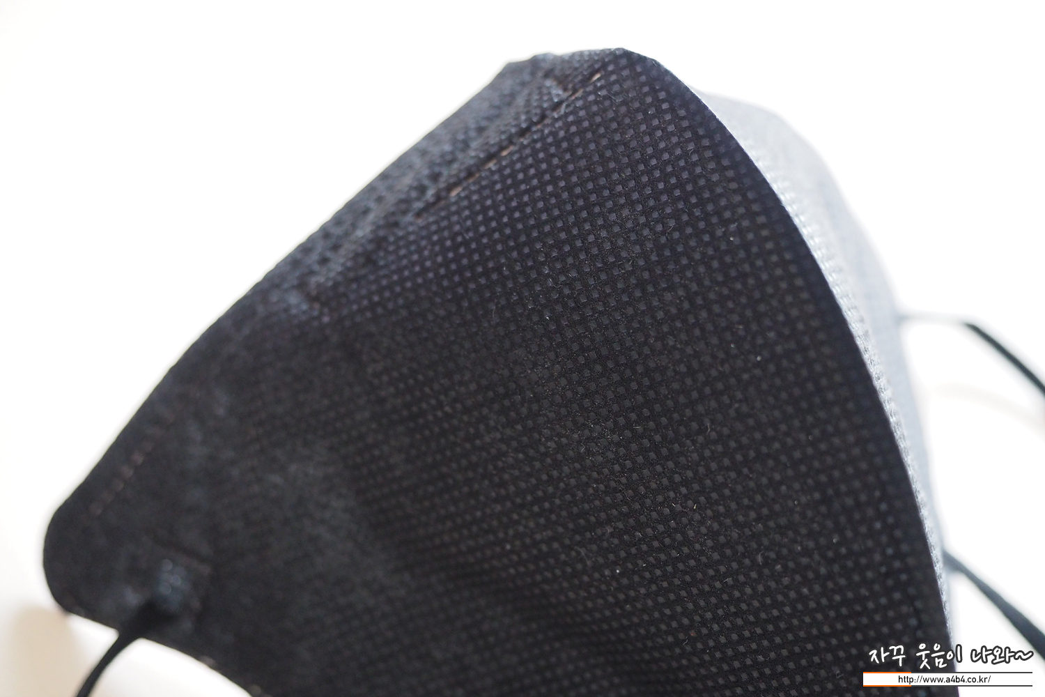 참존 마스크 성인용 블랙은 도트 처리된 매끄러운 감촉의 외피가 사용 되었습니다. 4중 구조로 약간의 두께감이 있지만, 하드하기 보다는 약간 소프트한 착용감과 착용핏을 보여주는 제품입니다.