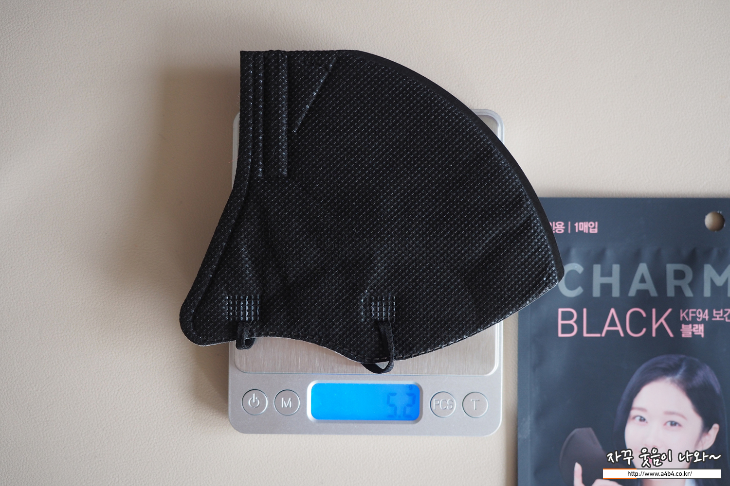 참존 KF94 마스크 성인용 블랙 중량은 5.2g으로 새부리 대형 마스크 중에서는 중량이 좀 있는 타입입니다. 회색 제품과 동일한 중량을 보이며, 흰색 제품보다는 조금 무거운 타입입니다.