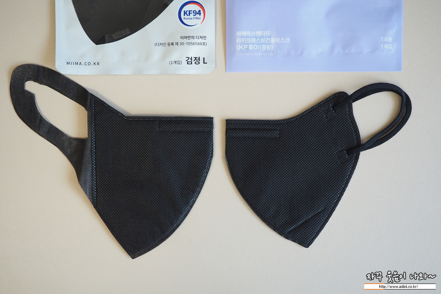 귀 안아픈 '미마 마스크 kf94 대형 블랙' 색감 및 질감 비교