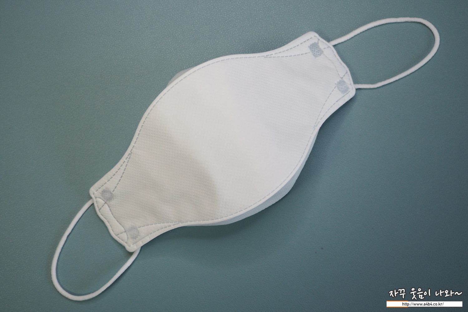 약한 도트가 처리된 드라이한 감촉의 겉감이 사용 되었으며, 조금 얇은 가로 3단접이식 3D 타입의 마스크입니다. 착용핏은 무난하며, 얇지만 힘이 없지는 않습니다.