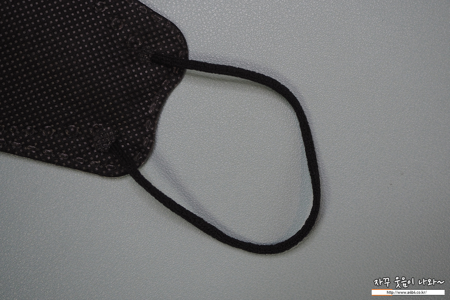 휴그린 마스크 이어밴드는 둥근모양의 끈이 마스크 앞면에 접착되어 있으며, 탄력은 보통수준 입니다.