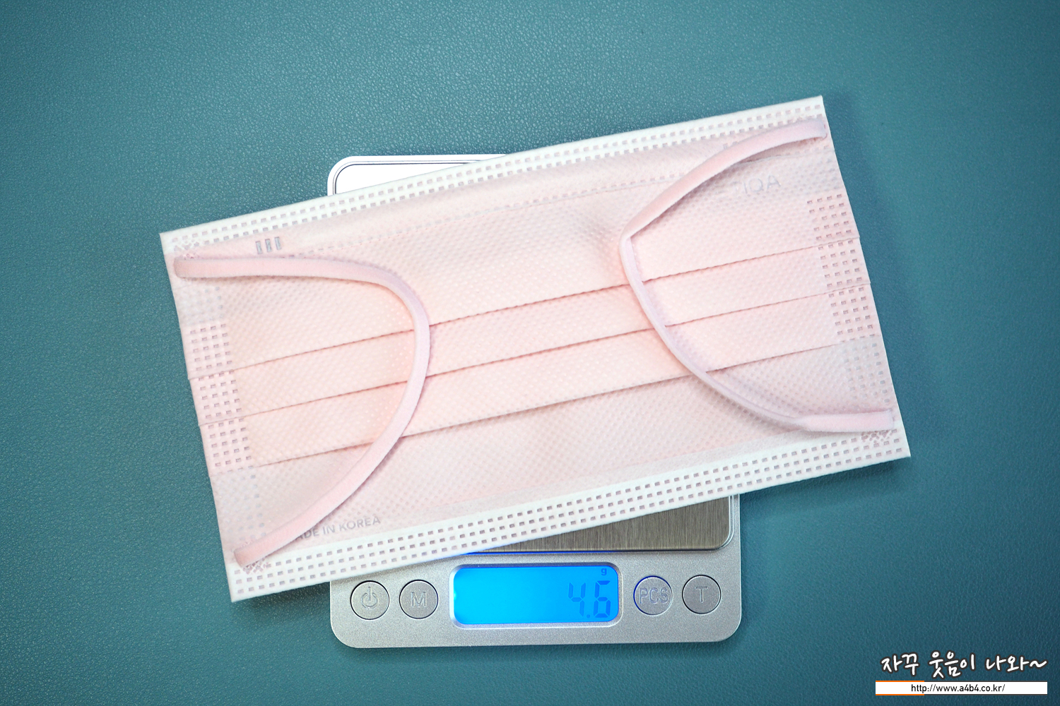 에티카 브리즈 마스크 핑크 컬러 중량은 4.6그램으로 일반적인 덴탈마스크 보다 중량감이 조금 있습니다. (보통 덴탈 마스크가 3그램 저후임을 고려하면...)
