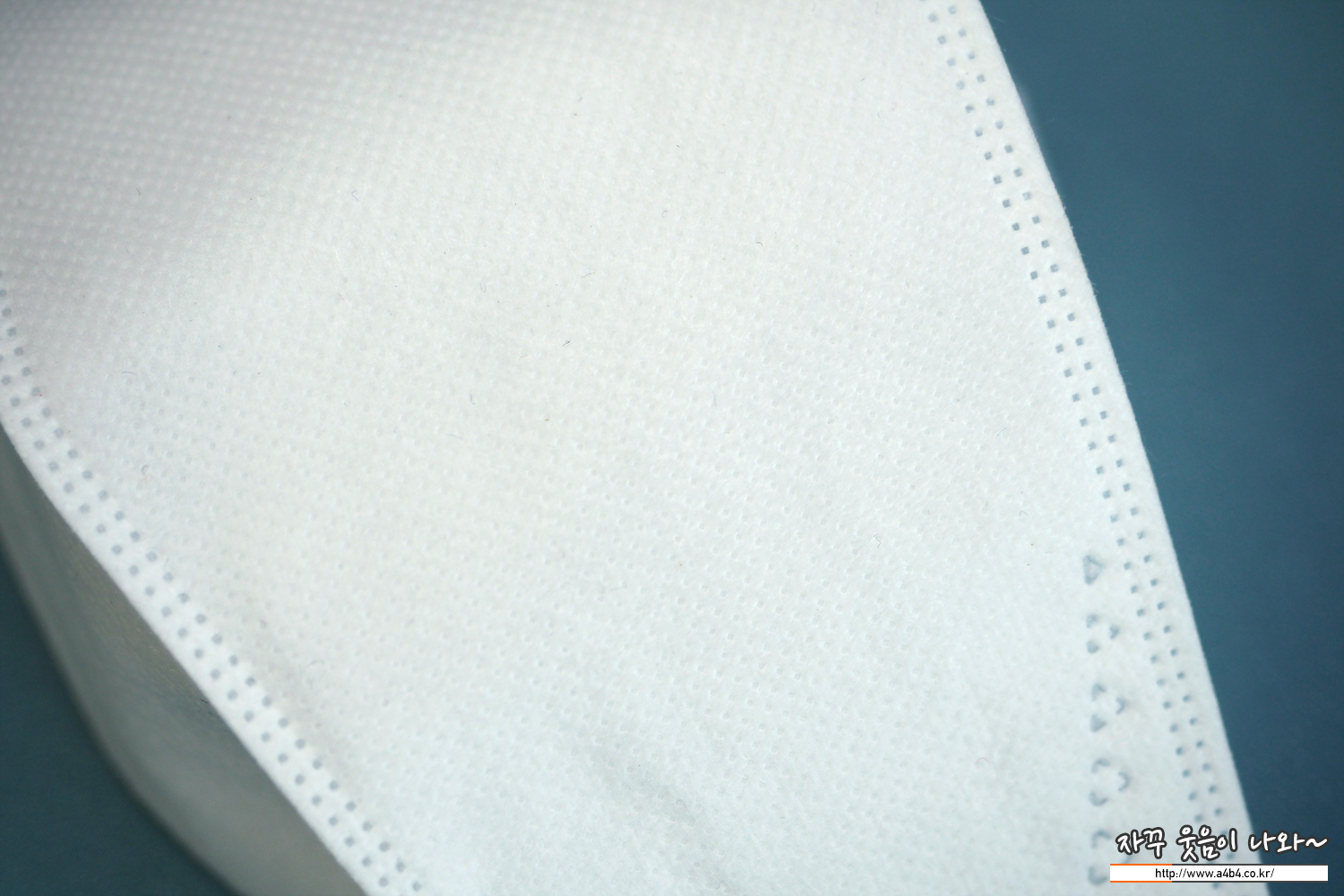 KF80 그린뷰 마스크 대형은 패턴처리된 드라이한 감촉(조금은 매끄러운)의 부직포가 적용 되었습니다. 4중구조로 두께감은 보통수준을 보여주고 있습니다.