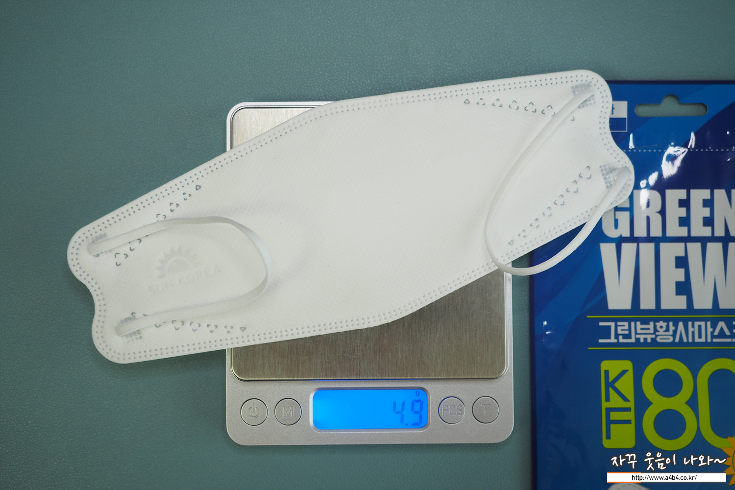 그린뷰 마스크 KF80 대형 무게는 4.9그램으로 다른 대형 마스크와 비슷합니다.