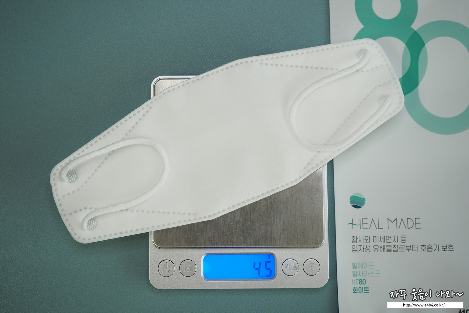 마스크 중량은 4.5그램으로 일반적인 대형사이즈 성인용 마스크 중량을 보입니다.