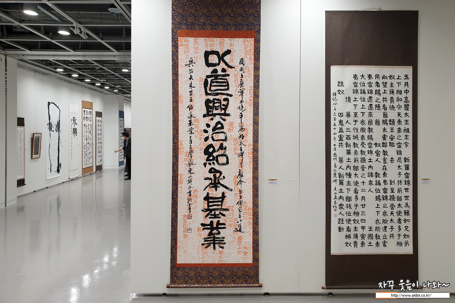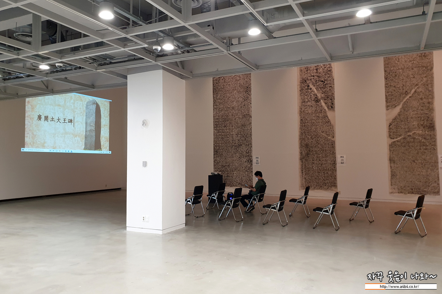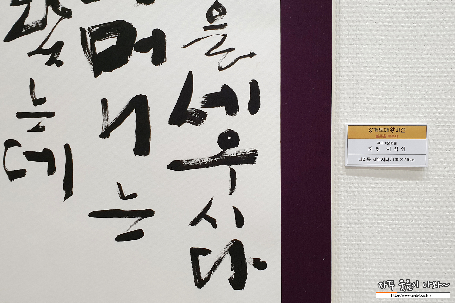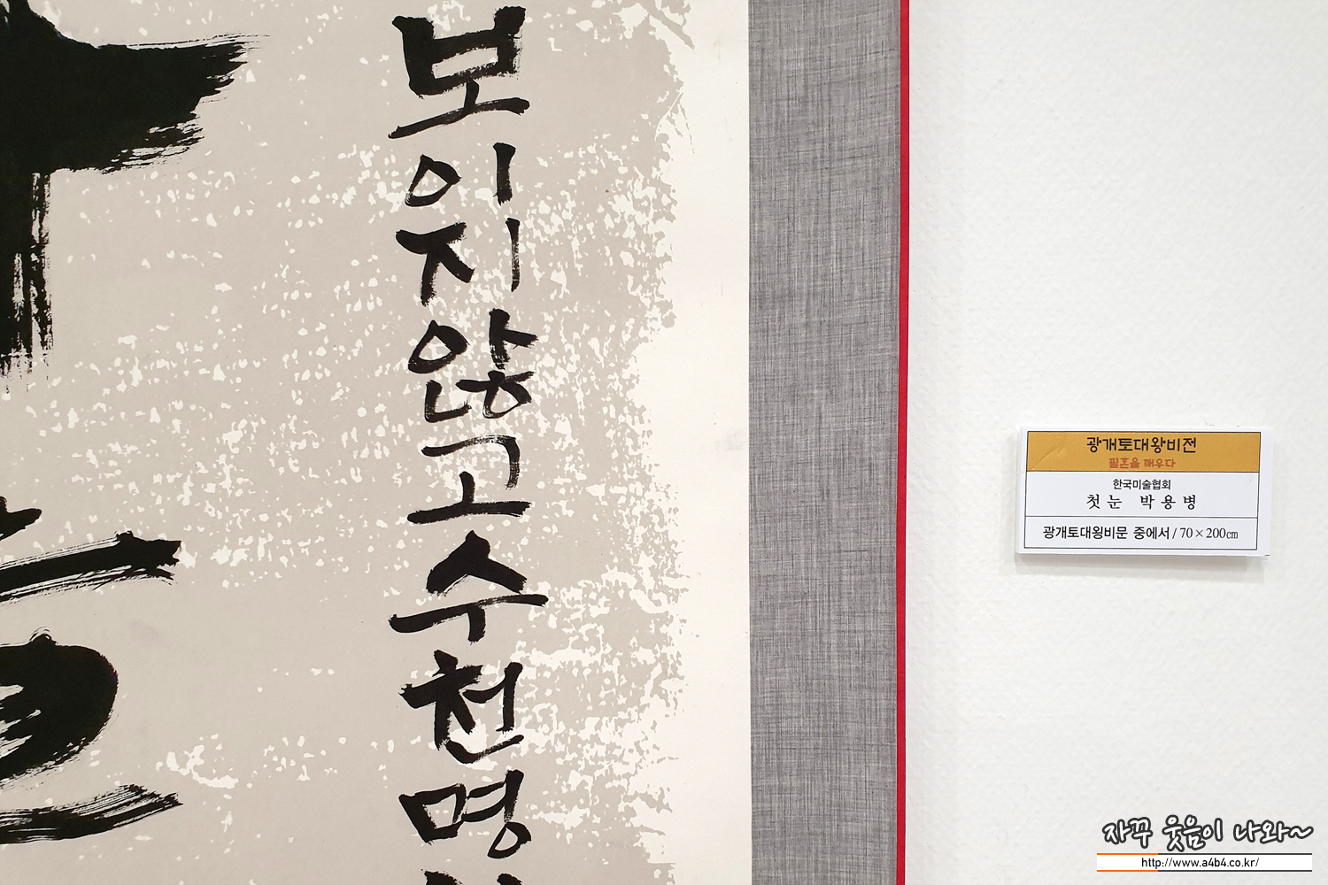 이번 전시회는 광개토대왕비 실물크기 모각탁본과 함께, 대왕비의 비문을 재해석한 다양한 서예작품들이 전시되고 있습니다. 워낙 서알못이어서 뭐라 평하기는 어렵지만 눈길을 끄는 독특한 작품들도 상당히 많은 전시회입니다.