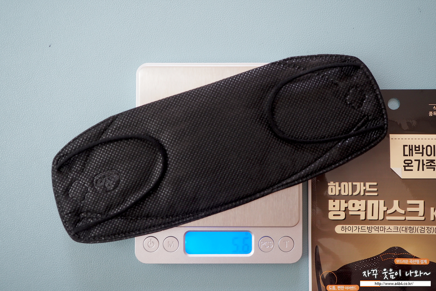 하이가드 방역마스크 KF94 블랙 대형 중량은 5.6그램으로 상대적으로 무거운 제품입니다.