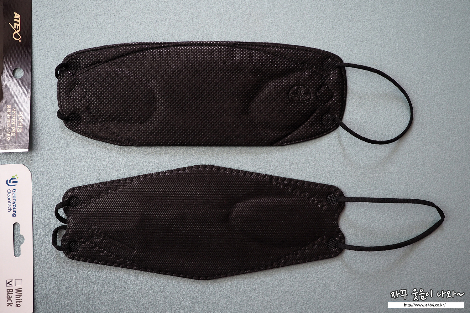 타입은 비슷하지만 마스크 두께와 귀걸이끈 굵기는 KF80 제품이 더 두껍네요.