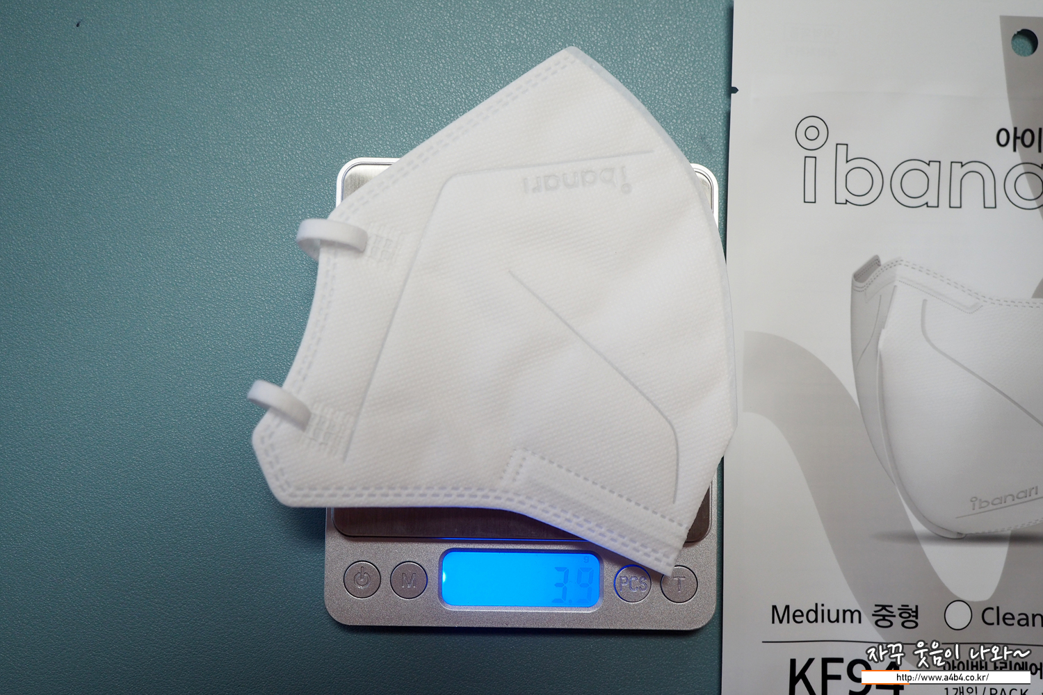 마스크 무게는 대형이 4.3그램, 중형이 3.9그램입니다. 약 0.4그램 차이가 나며, 타사 새부리형 마스크에 비해 조금 가벼운 타입의 Kf94 마스크입니다.
