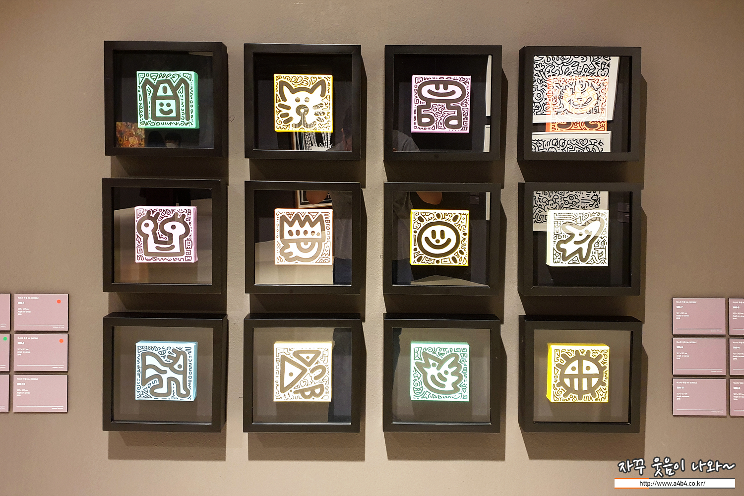 미술관 쇼윈두에서 전시중인 미스터 두들과 다카시 무라카미의 작품...