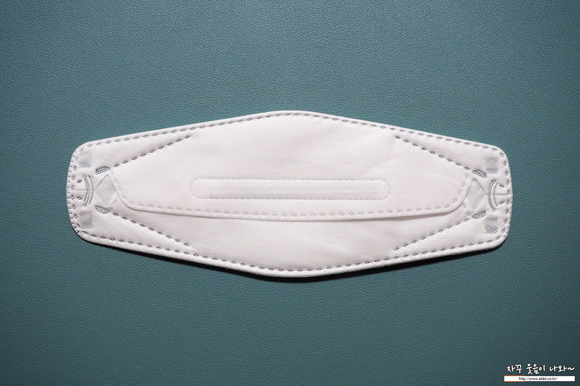마스크 타입은 일반적인 가로 삼단접이식 입체형 마스크로 큰 디자인 특징은 없습니다. 마름모 타입으로 마스크 높이에 비해 약간 기다란 타입의 제품입니다.