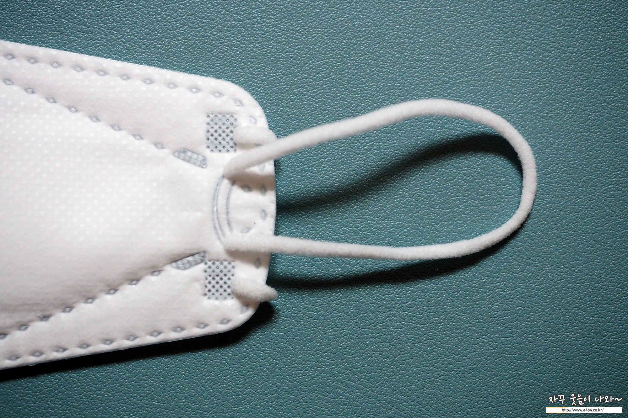 KF94 맑은하늘 황사방역마스크는 원형의 이어밴드가 마스크 앞부분에 접착되어 있습니다. 탄성은 조금 약한 타입으로 잘 늘어나는 제품입니다. 이에 얼큰이인 저도 귀에 무리가 덜 합니다.