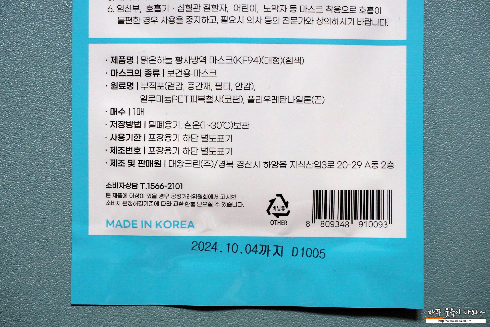 여유있는 사이즈의 KF94 대형 마스크인 맑은하늘 황사방역마스크 사용후기입니다.