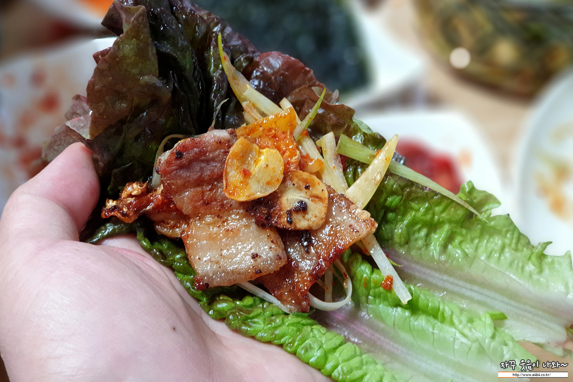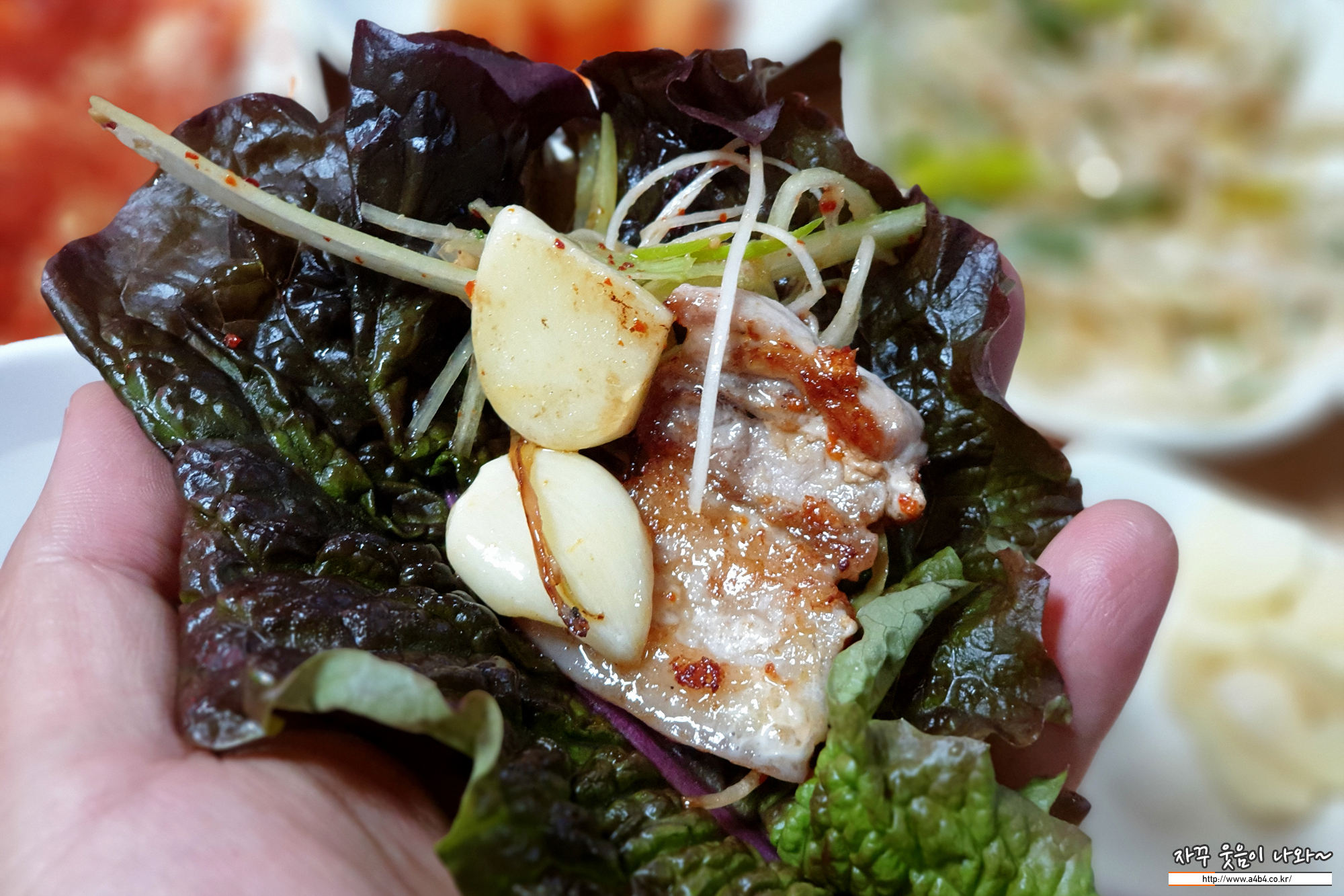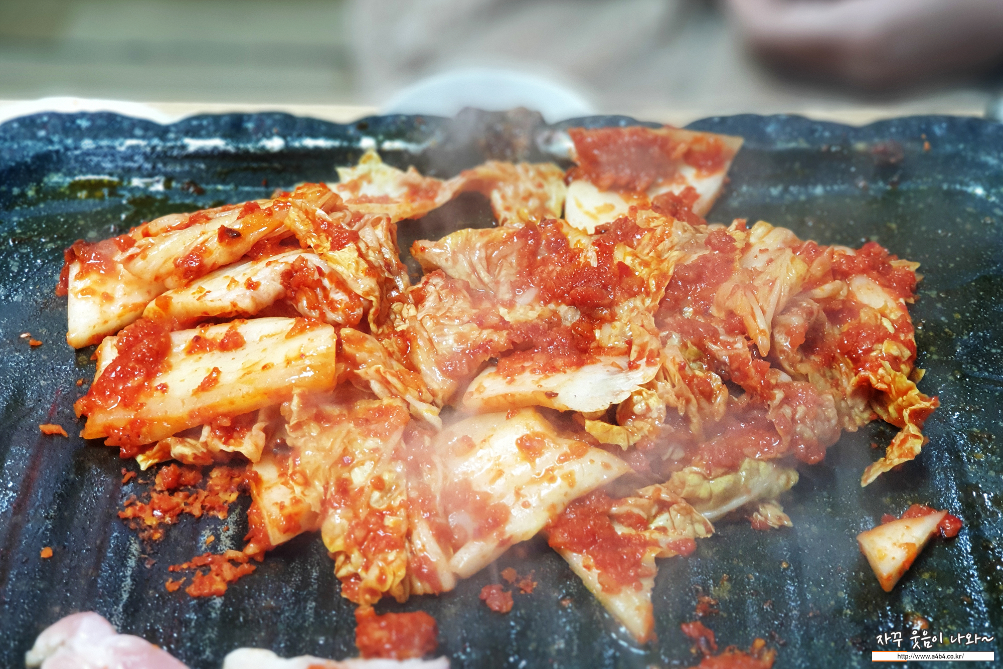 그리고 시큼한 맛의 신김치도 같이 올리고, 파채도 마늘도 올리고...