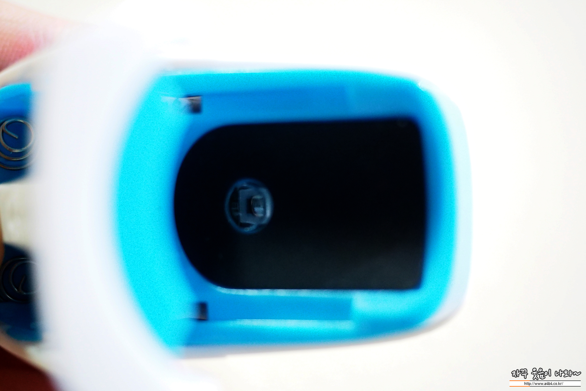 저가 산소포화도 측정기로 완성도나 디자인은 좀 아쉬운 부분이 많습니다. 불량 장난감 같은 색상과 조금은 불안한 집계. 안쪽에는 측정위한 광센서가 위치해 있습니다.