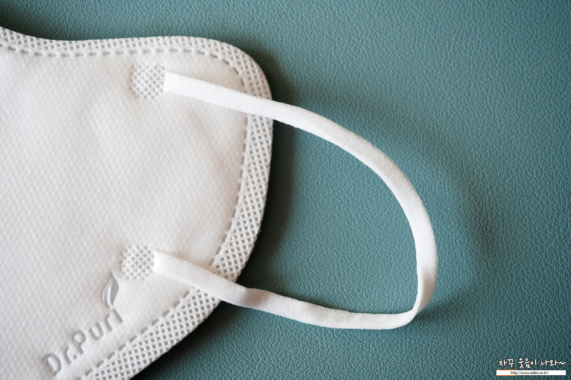 새부리형 닥터퓨리 마스크 귀걸이끈은 다른 고급 마스크에 주로 사용되는 납작한 타입의 칼국수 귀걸이끈이 마스크 앞부분에 부착되어 있습니다. 귀걸이끈 탄석은 조금 강한 타입으로 끈의 두께와 길이가 있어 얼큰이인 저도 귀가 당기거나 아프지는 않습니다.