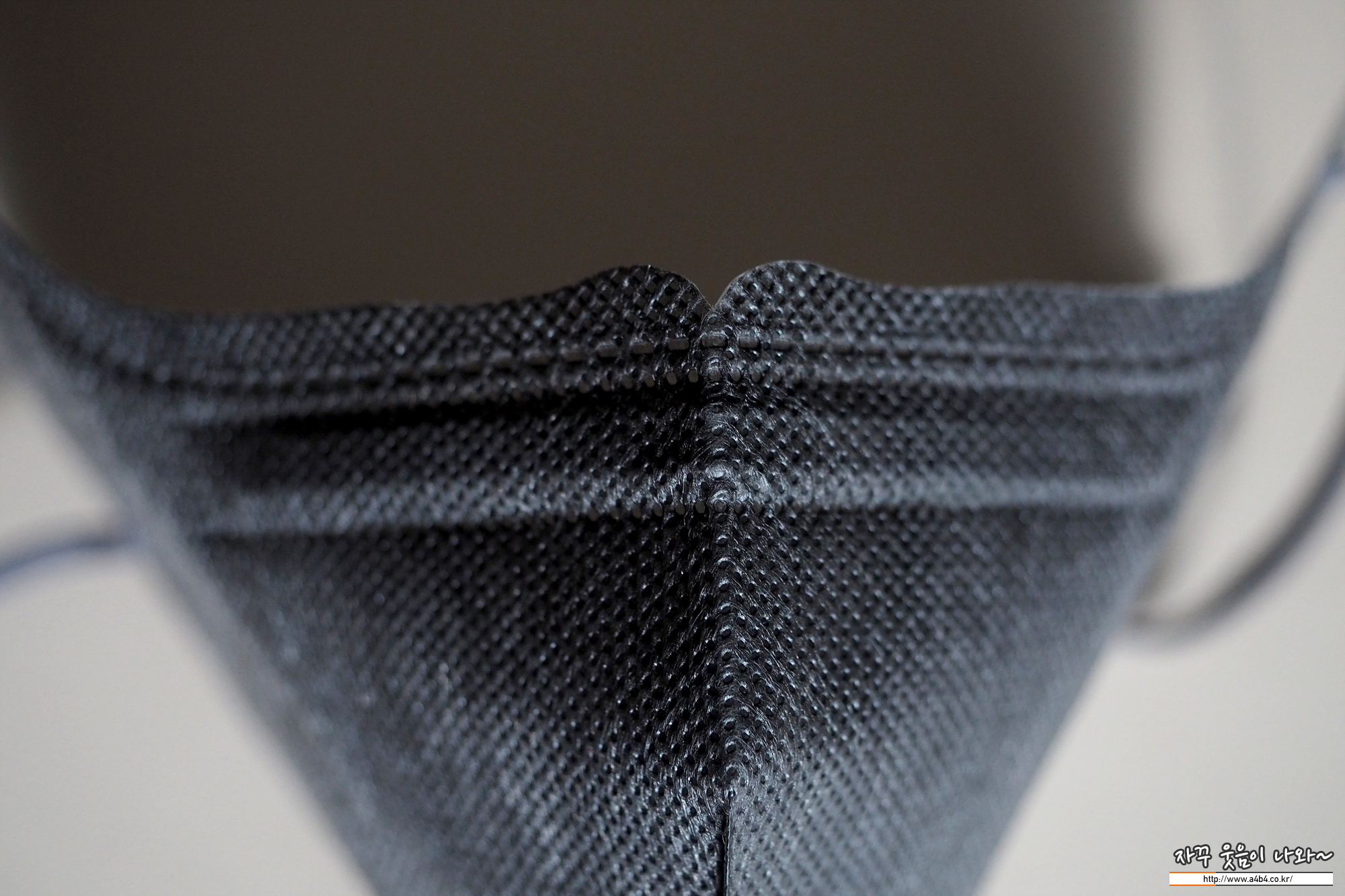 고급 새부리형 마스크에 주로 사용되는 납작한 타입의 칼국수 이어밴드가 마스크 전면에 부착되어 있으며, 이어밴드 탄력은 약간 강한 편입니다. 역시 칼국수 타입 이어밴드의 장점인 귀에 자극이 적은 착용감은 닥터퓨리 비키 마스크에서도 느낄 수 있습니다.