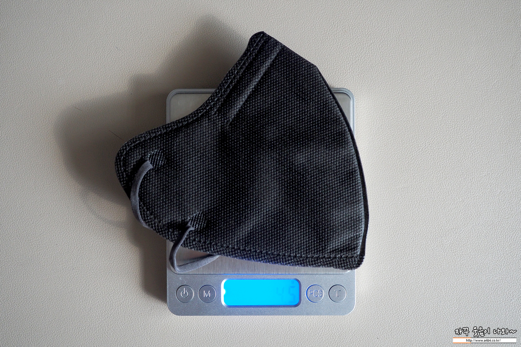 KF94 닥터퓨리 컬러마스크 그레이 색상 대형 중량은 5.4g으로 약간 무게가 있는 제품입니다. (아래는 중형과 소형)