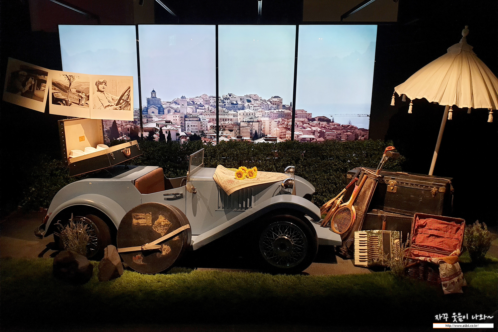기차, 자동차, 배, 비행기 등 이동수단의 발전과 함께 여행이 늘어나면서 함께한 이야기를 만나볼 수 있습니다. 특히 단순히 가방만을 배치한 것이 아닌 트렁크와 어울리는 배경이 준비되어 있어 작품에 대한 이해와 재미를 주고 있습니다.