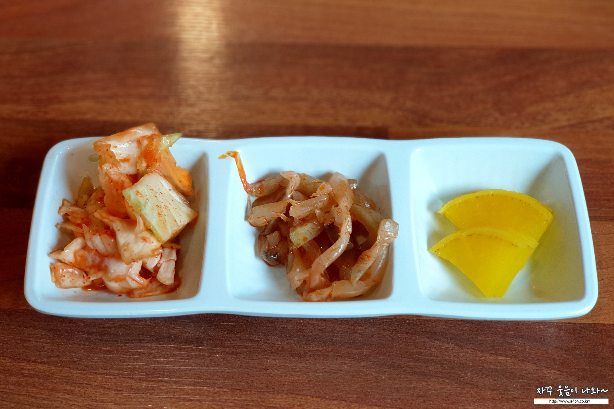 기본 반찬은 양배추 김치, 짜사이 단무지가 나옵니다.