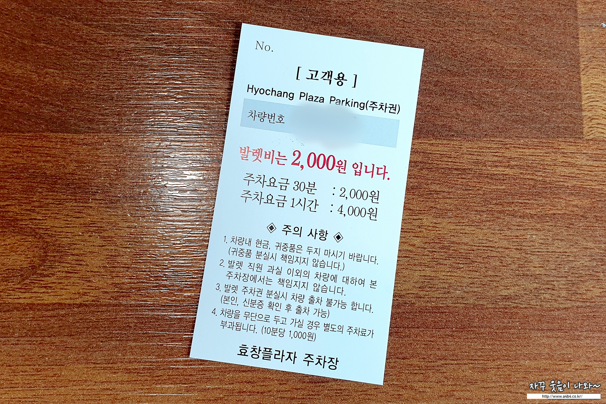 저는 서두산딤섬 2호점 근처에 있는 '효창유료주차장'을 이용했는데. 40분에 3,000원의 주차요금과 발렛비용 2,000원 총 5,000원의 주차요금이 나왔네요. 방이동 먹자골목은 불법주차 단속이 심한 곳이니 참고하세요.