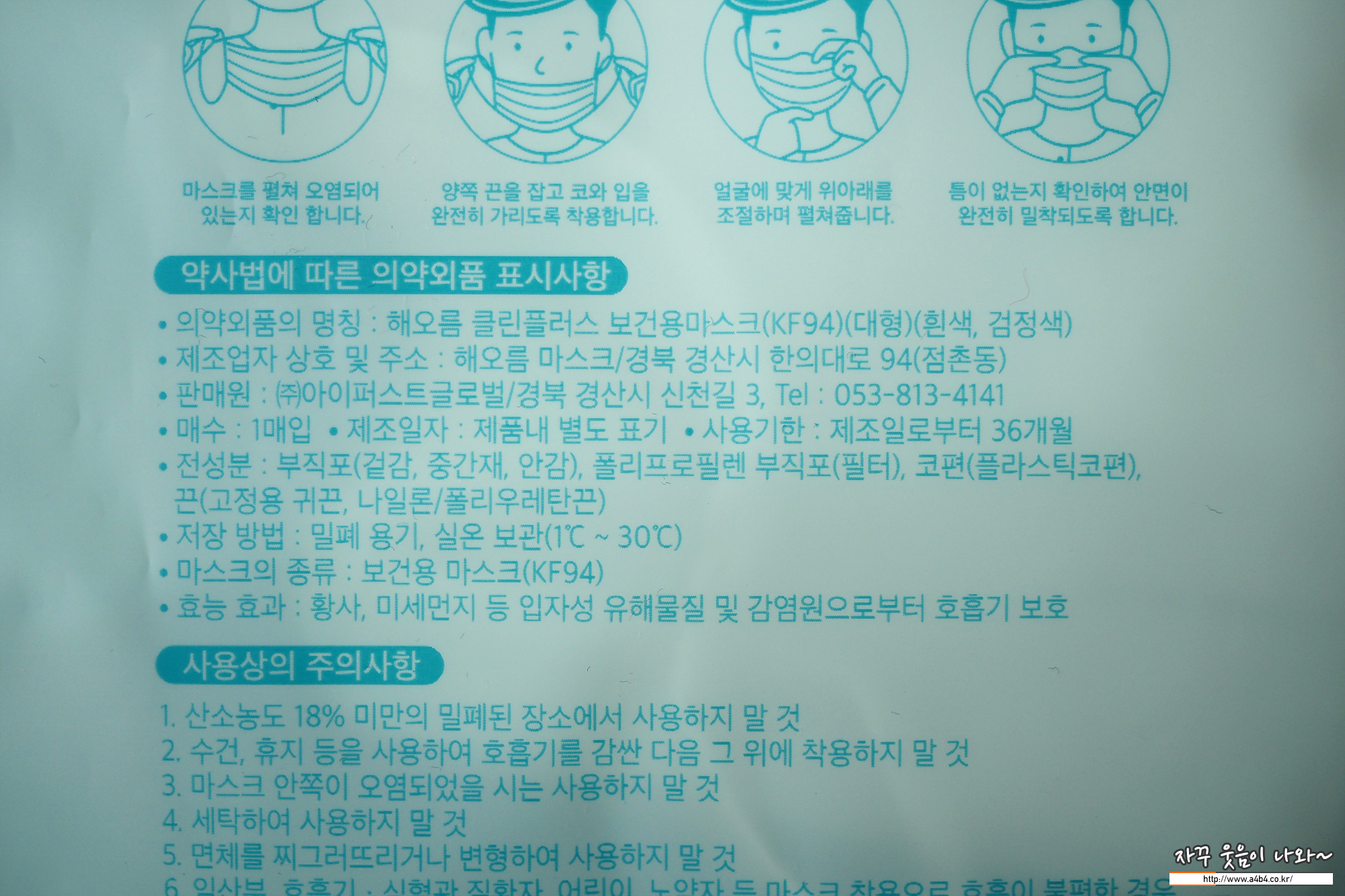 KF94 새부리형 해오름 마스크 사용기 : 작은 대형 사이즈