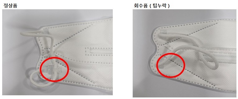 뉴크린웰 끈조절 스타일 황사방역용마스크(KF94) > 형상(마스크 끈조절 클립 누락) 부적합