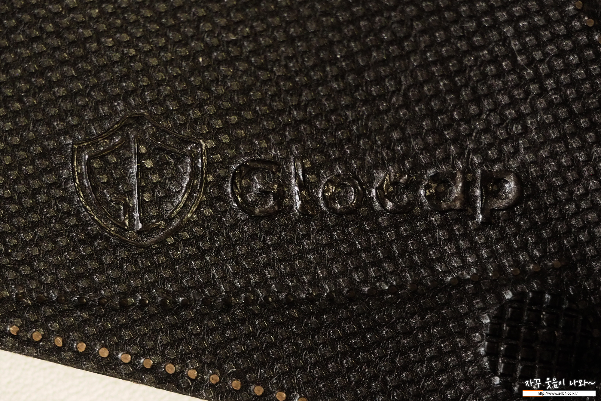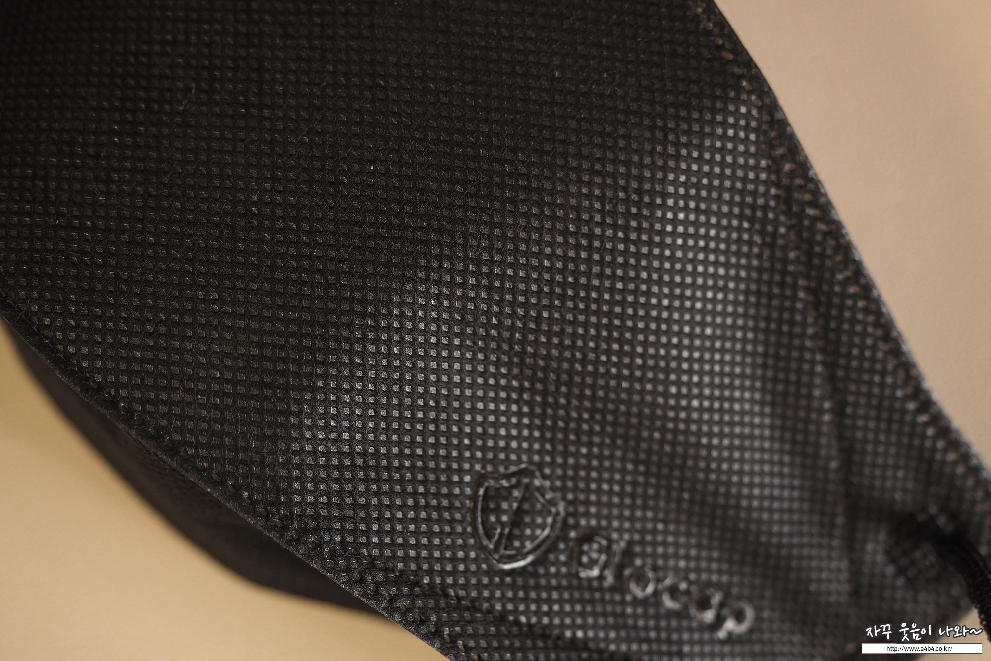 마스크 앞부분에는 제품명인 Glocap 문양과 제조원이 각인되어 있습니다만, 깔끔하게 보이지는 않습니다. 역시나 블랙마스크 각인은 대부분의 제품에서 지저분하게 보이네요.