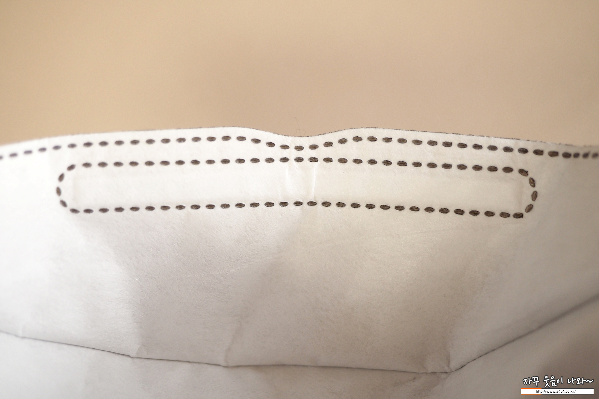이중피복철사가 사용된 KF94 글로캡 마스크 대형 코편 마감은 무난하게 잘 처리되어 있습니다. 장시간 사용해도 코편이 틀어어지가 코를 자극하는 문제점은 생기지 않았습니다.