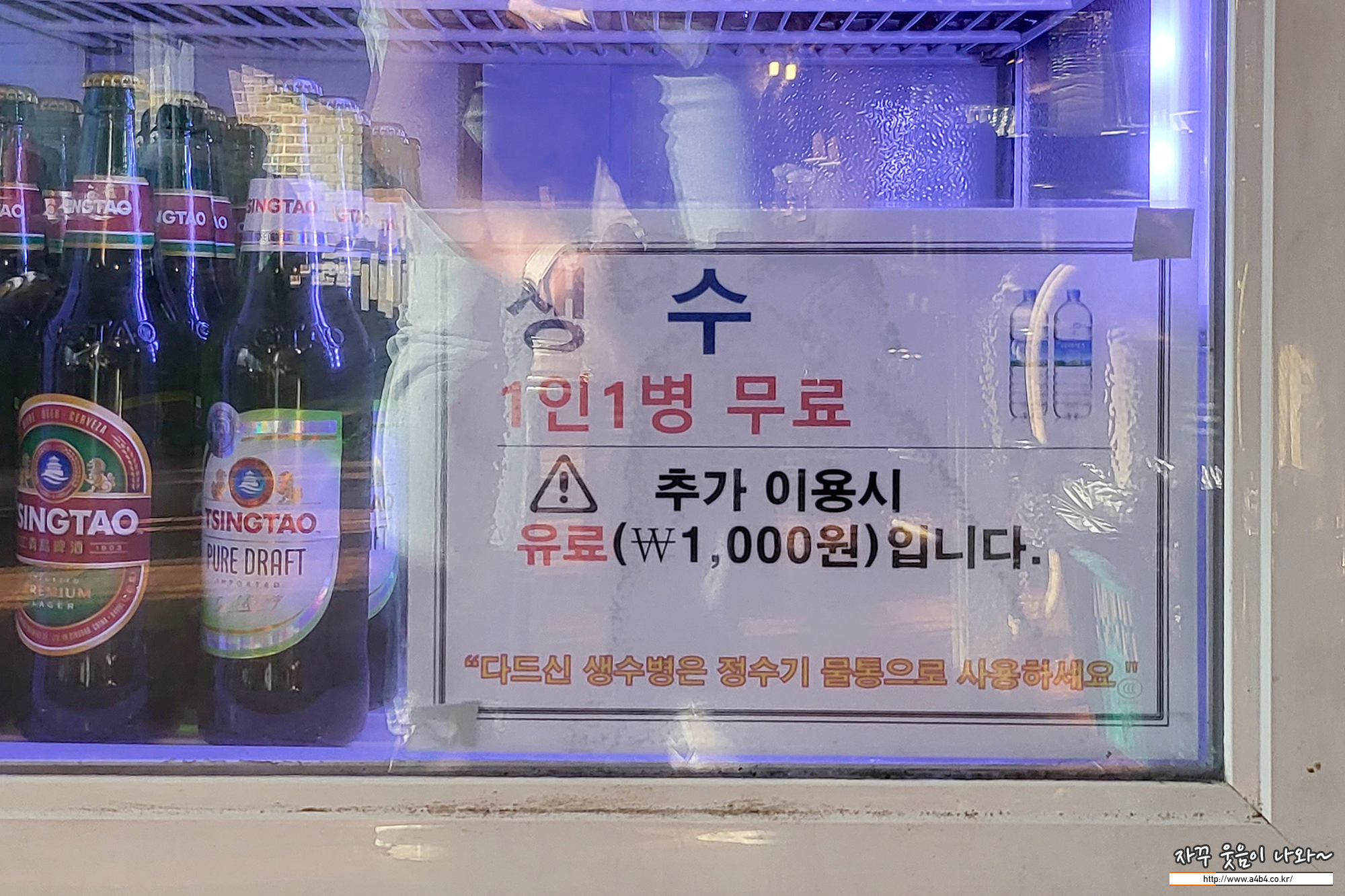 맥주와 소주, 탄산음료가 준비되어 있고, 셀프로 가지고 가서 먹고 계산할때 바구니에 빈 병을 담아서 같이 계산하면 됩니다.