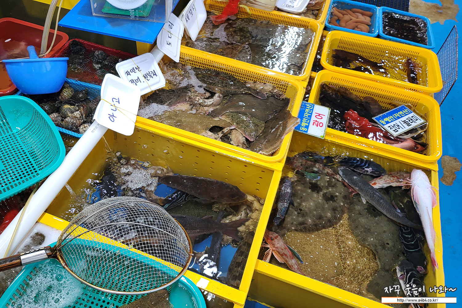 물치항 회센터는 동해에서 잡히는 활어등도 있지만 서해안과 남해에서 주로 잡히는 물고기들도 만나볼 수 있습니다.