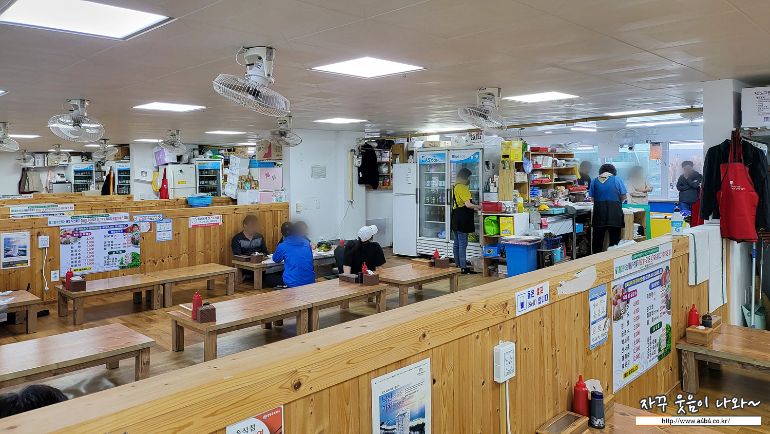 동일한 바닥과 테이블 구성에 업소별로 낮은 파티션만 올라가 있습니다. 그냥 자리는 업소별 차이 없다!