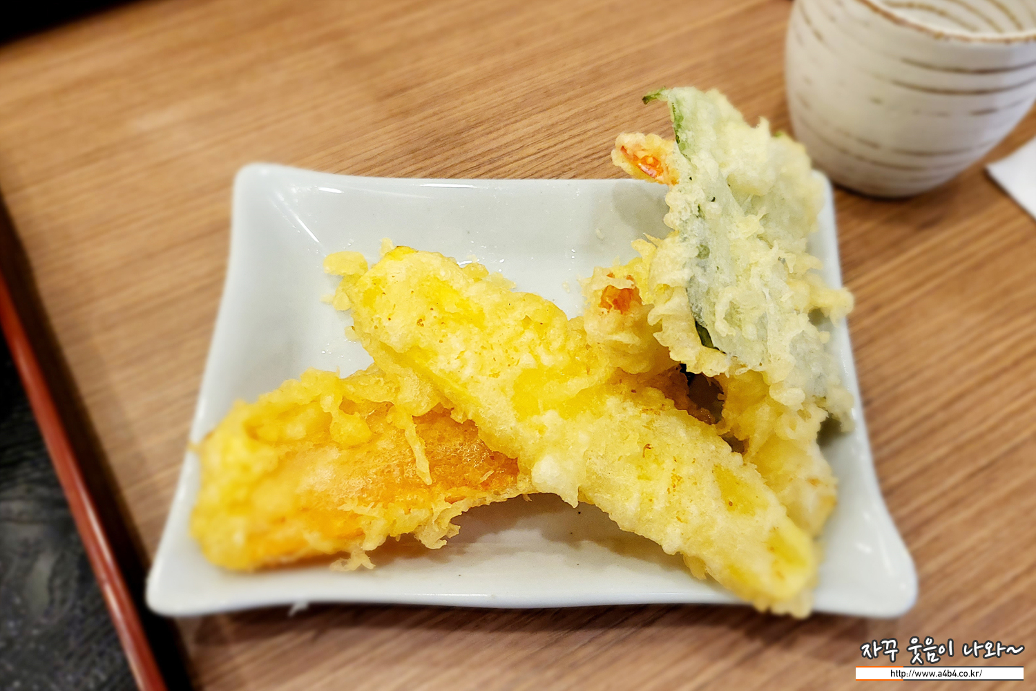 현대백화점 맛집 송 정식메뉴에서 나오는 튀김입니다. 사진으로 봐도 상당해 깨끗하고 깔끔하게 튀긴것을 볼수 있습니다. 바삭한 식감과 함께 메밀국수와 잘 어울리는 메뉴입니다.