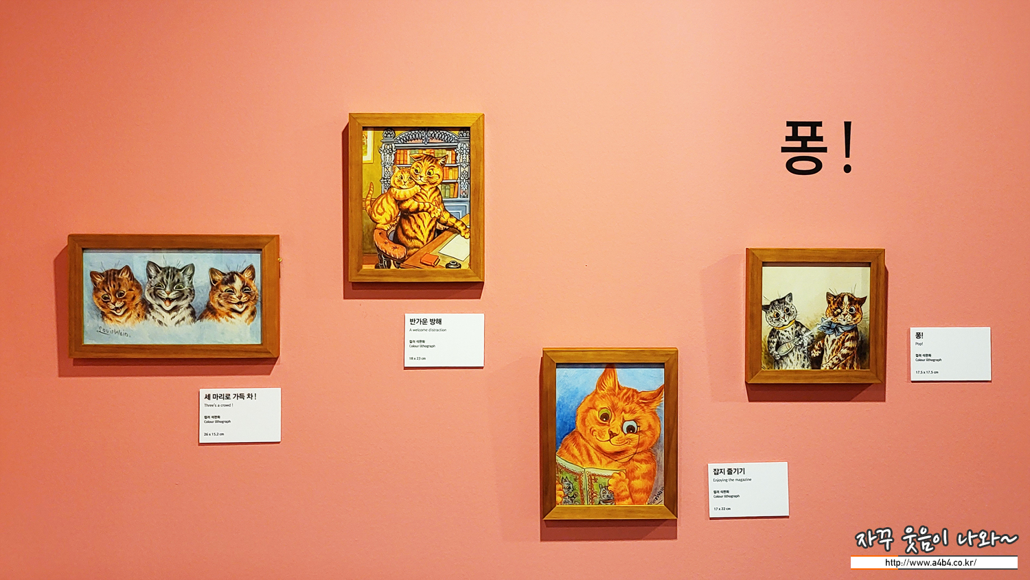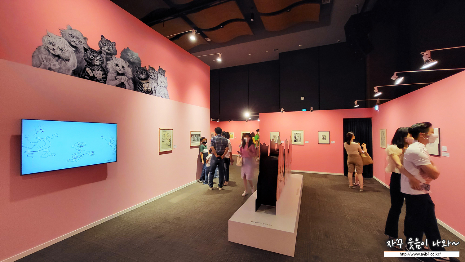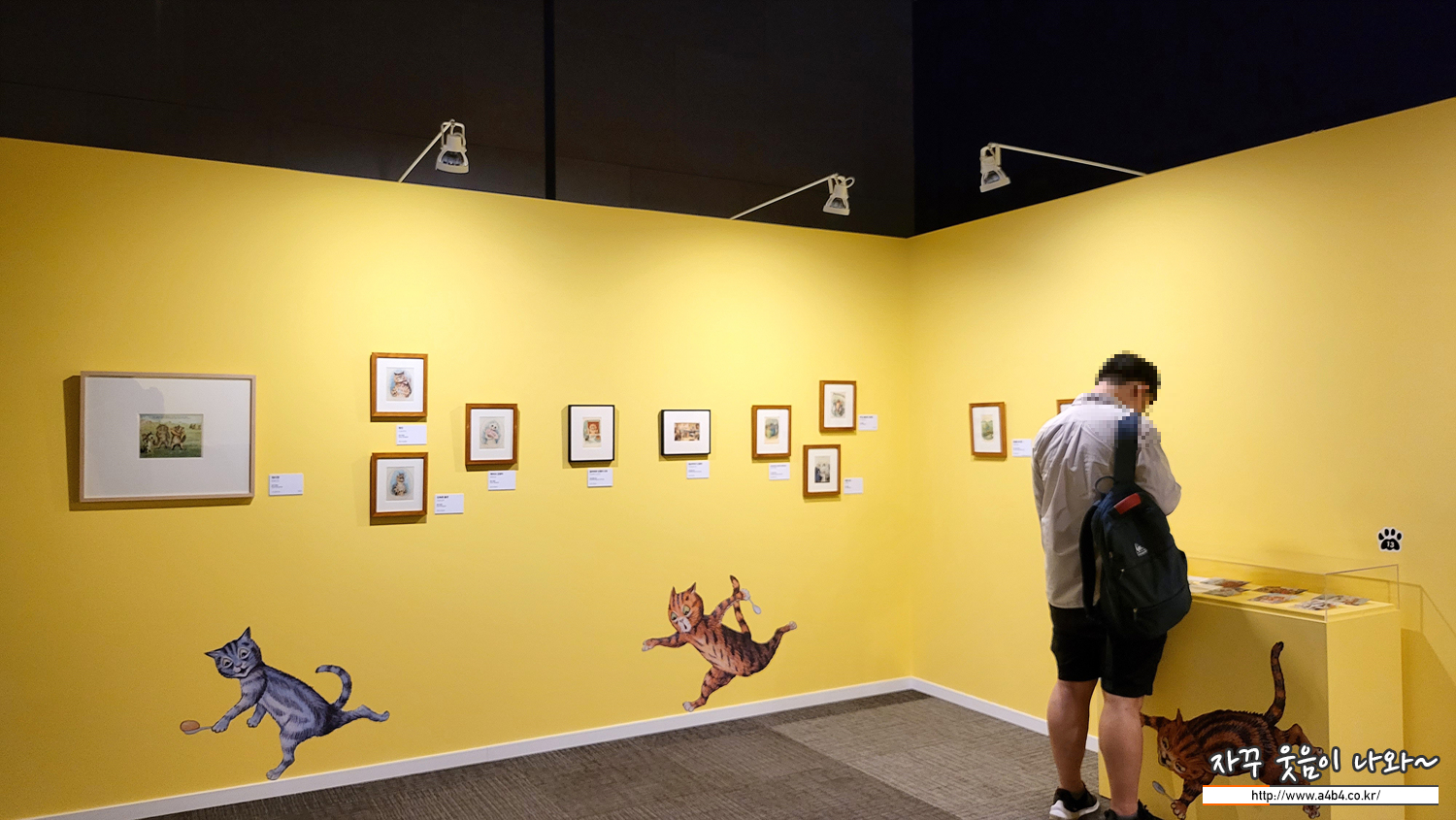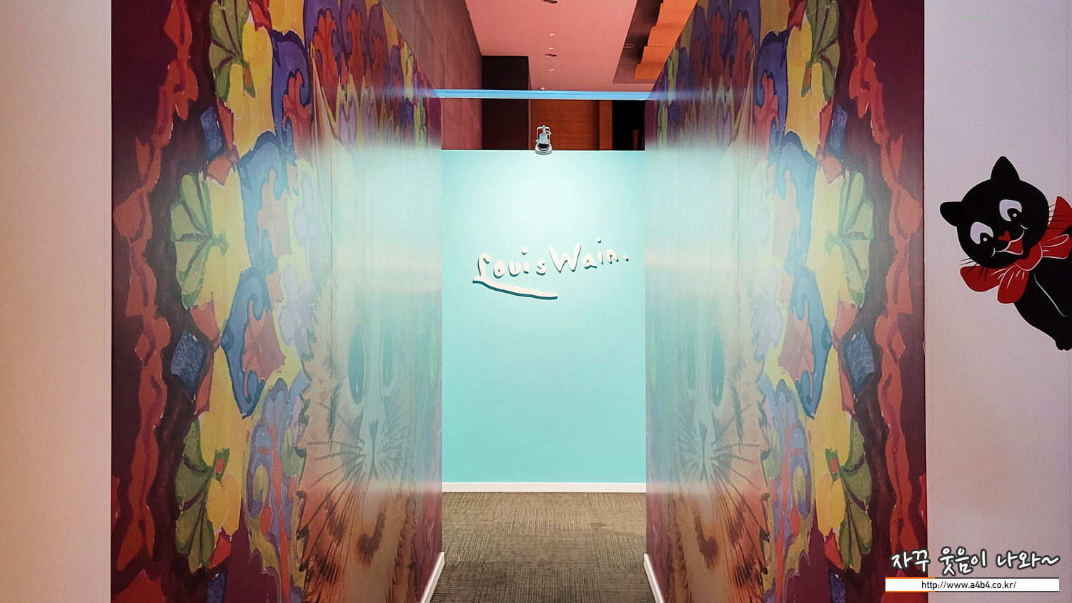 전시장 중간에 위치한 포토존, 루이스 웨인의 귀여운 세 마리 고양이 그림과 함께 사진 촬영이 가능합니다.