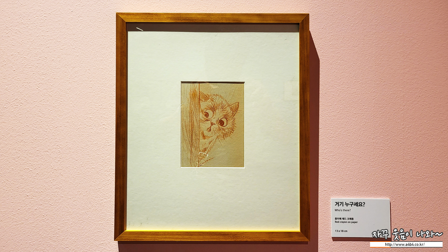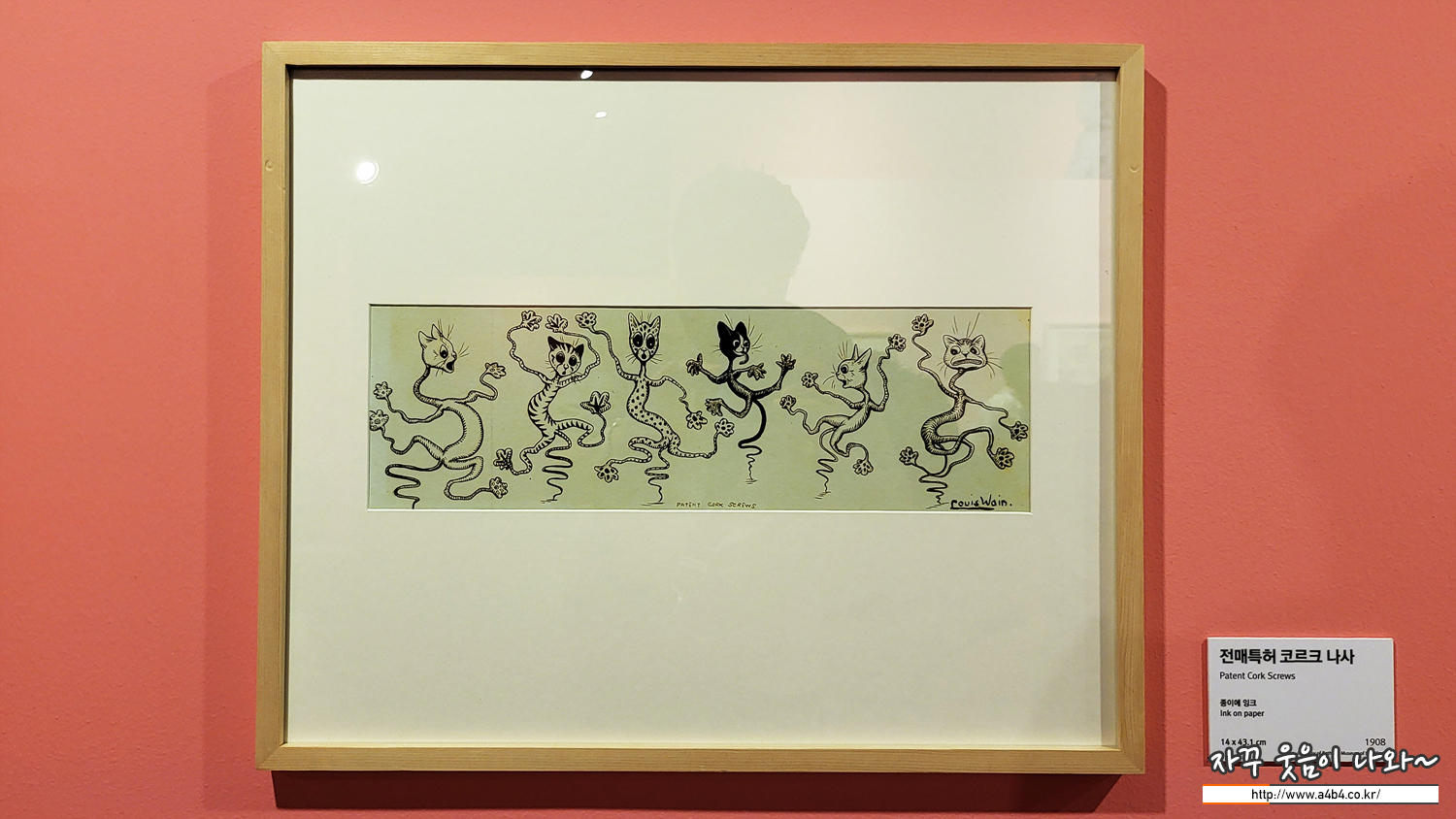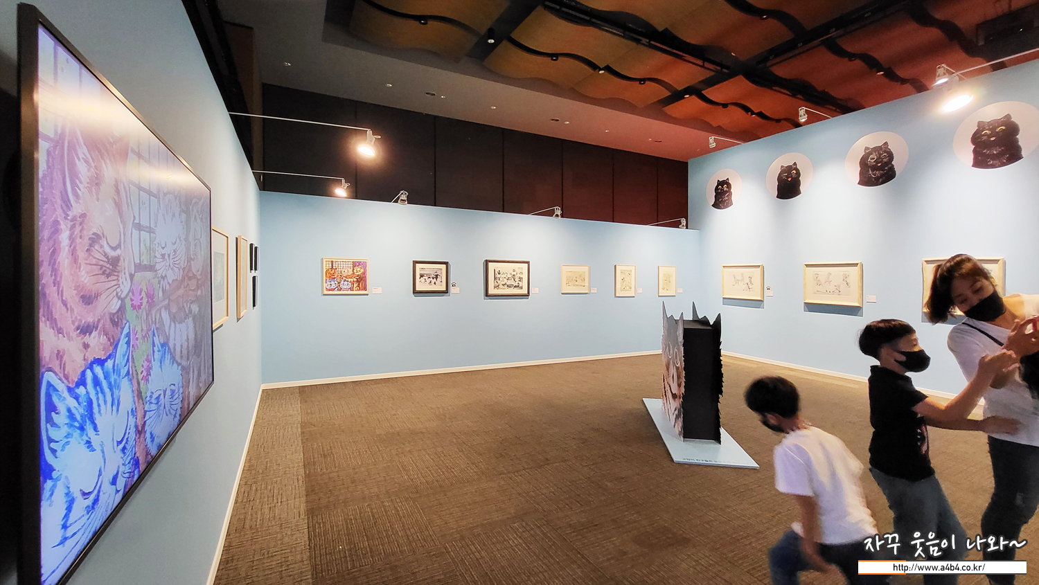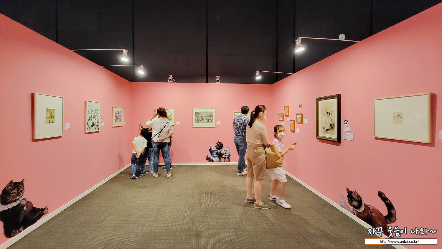 전시장 중간에 위치한 포토존, 루이스 웨인의 귀여운 세 마리 고양이 그림과 함께 사진 촬영이 가능합니다.