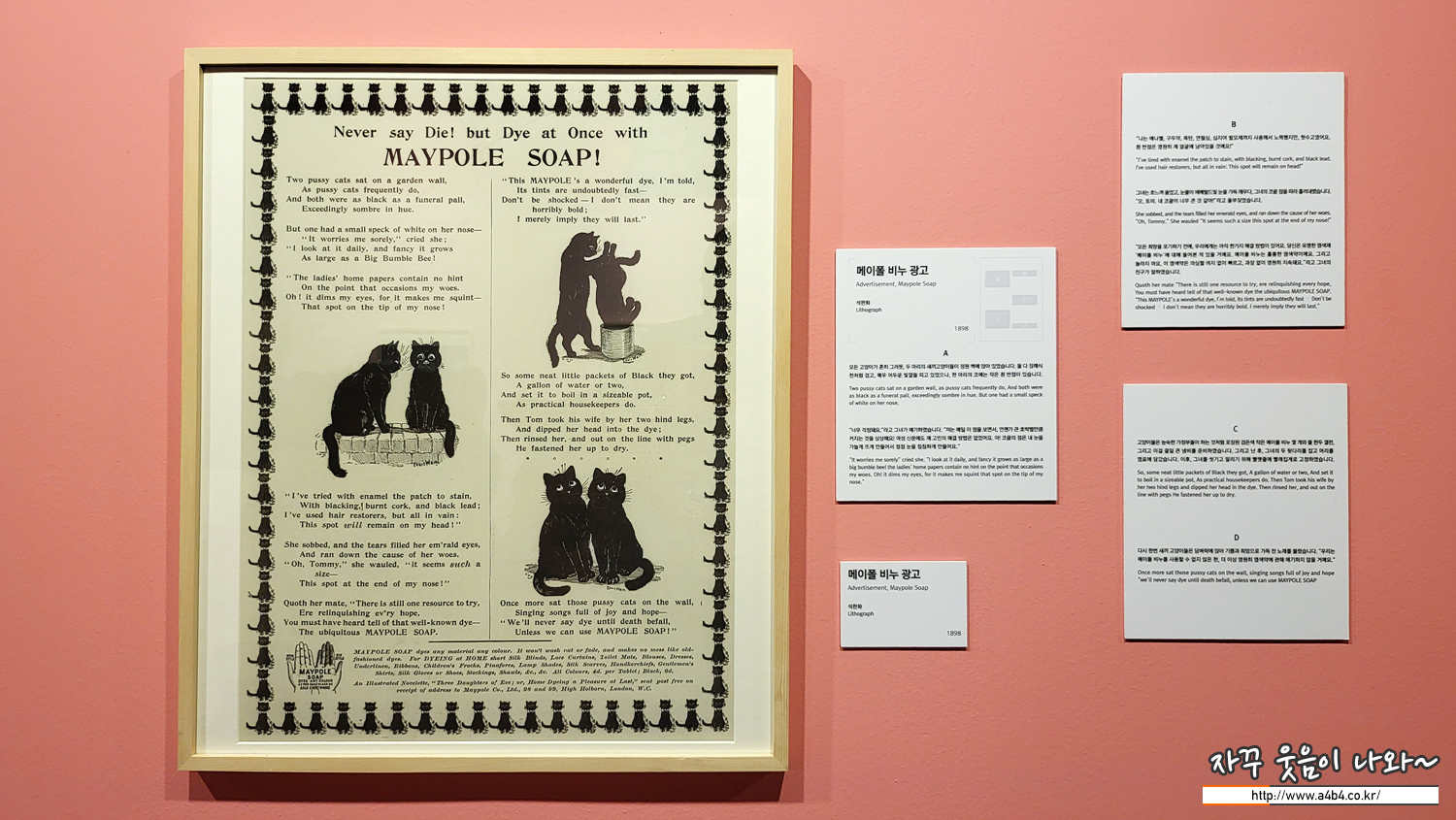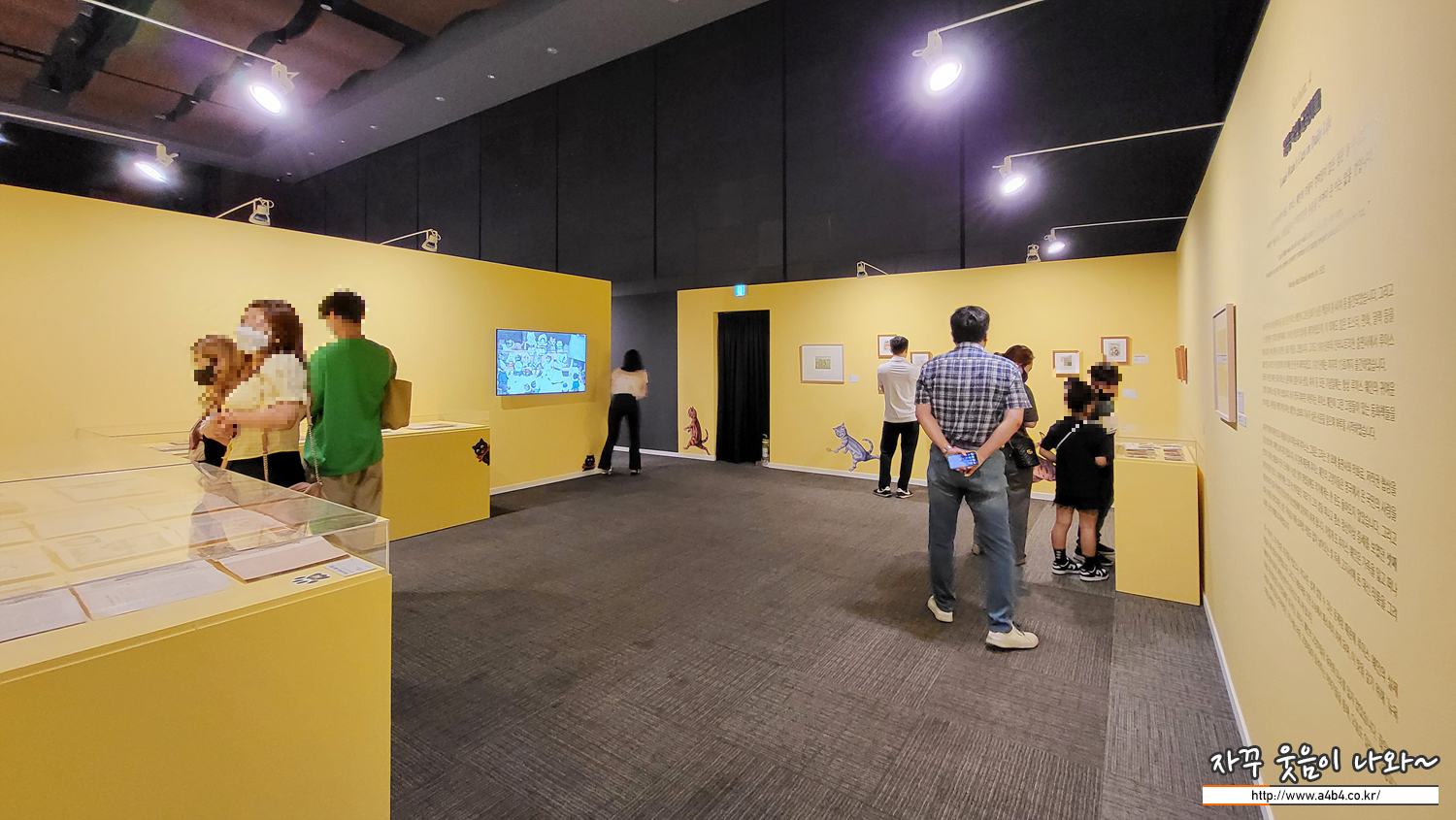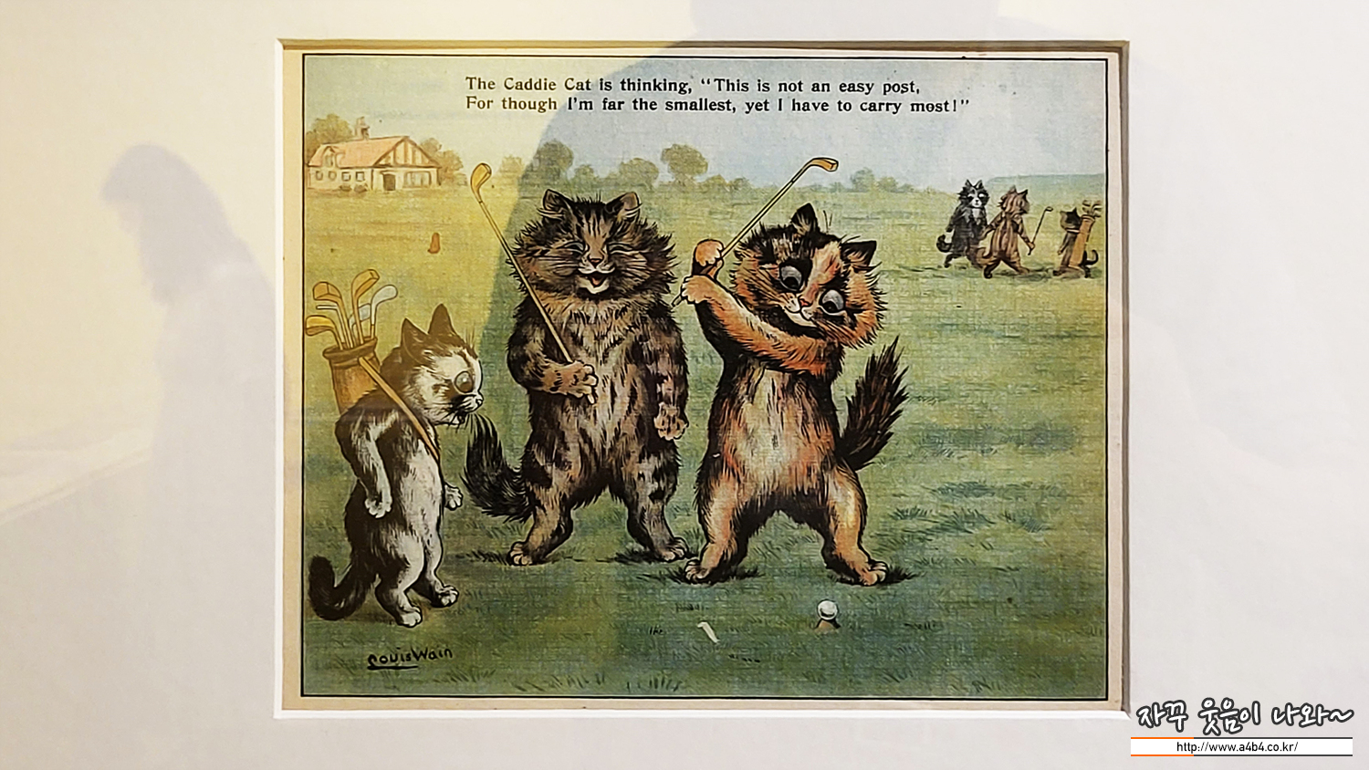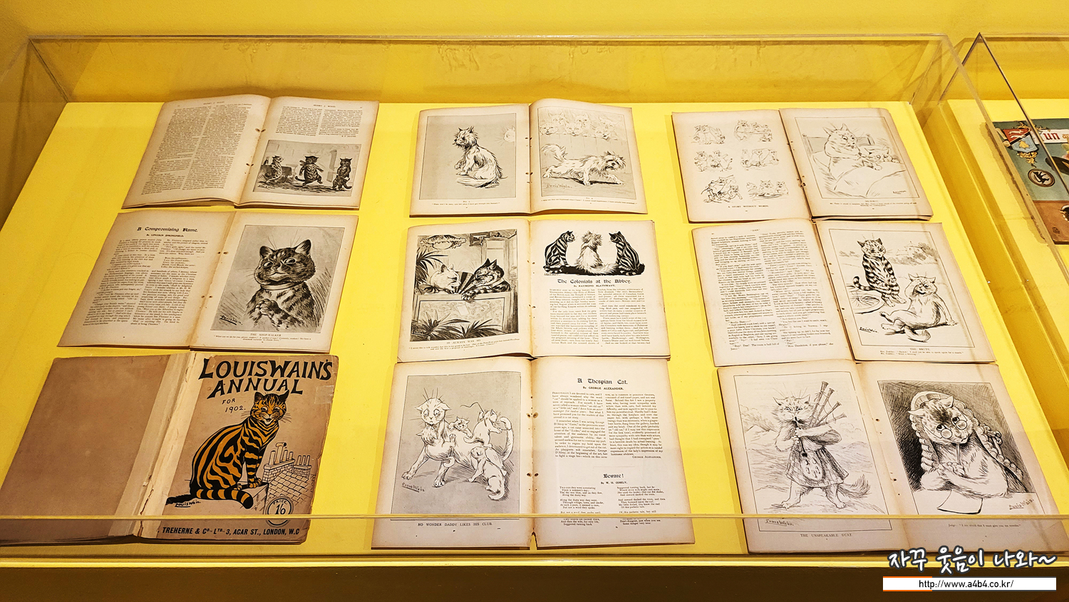 전시장 중간에 위치한 포토존, 루이스 웨인의 귀여운 세 마리 고양이 그림과 함께 사진 촬영이 가능합니다.